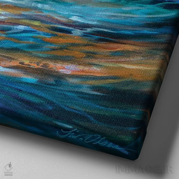 تابلو انتزاعی طلوع نارنجی اثر لیندا اولسن - نمای نزدیک بافت بوم