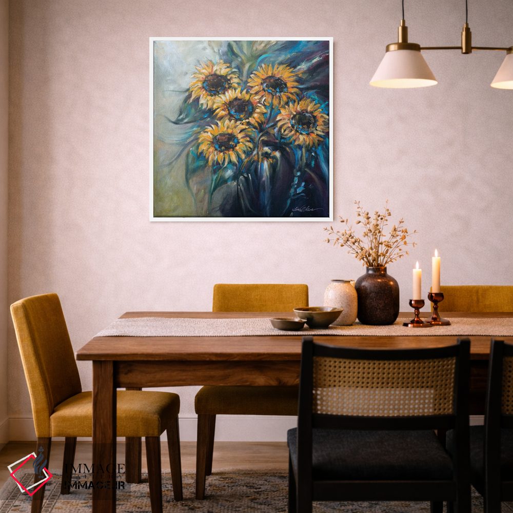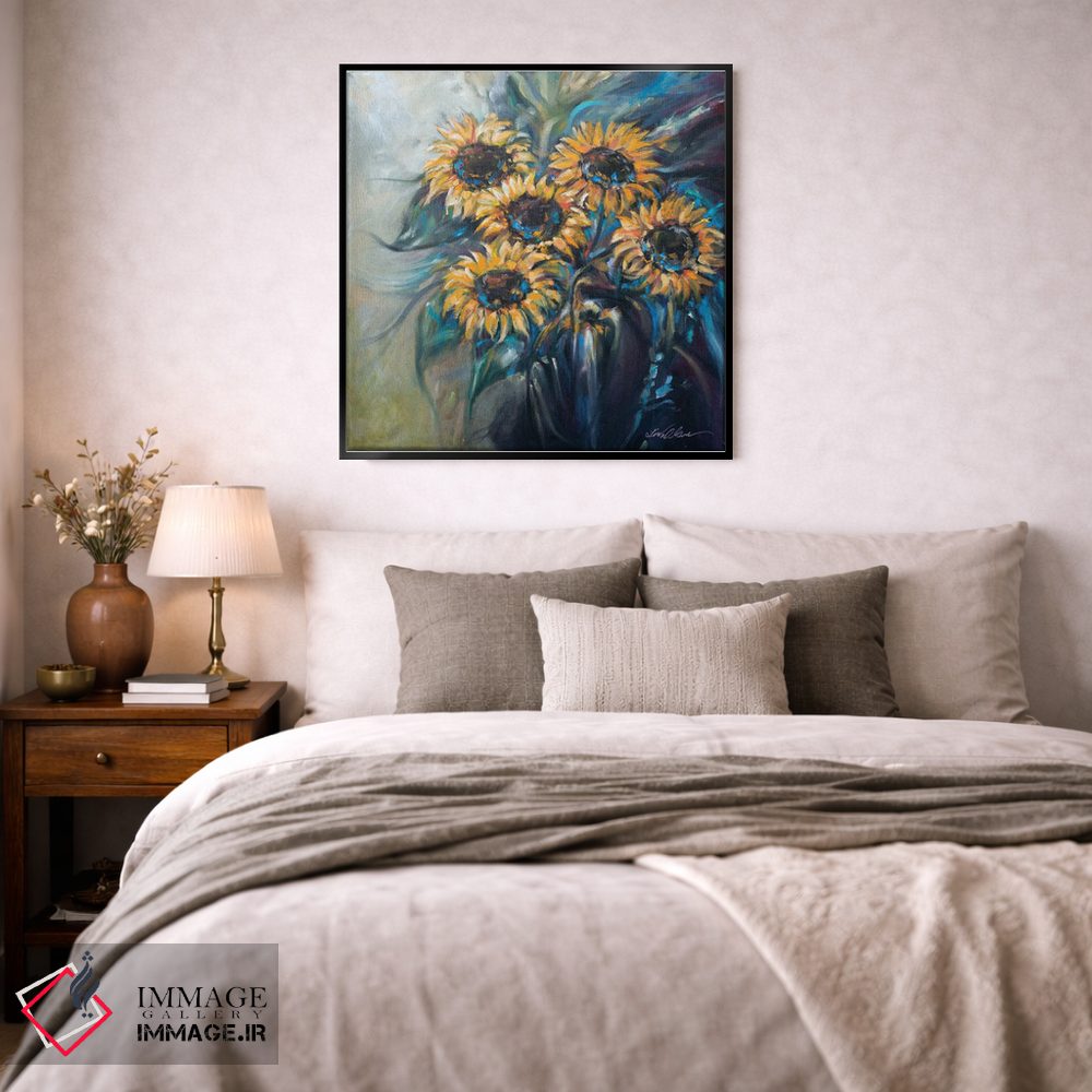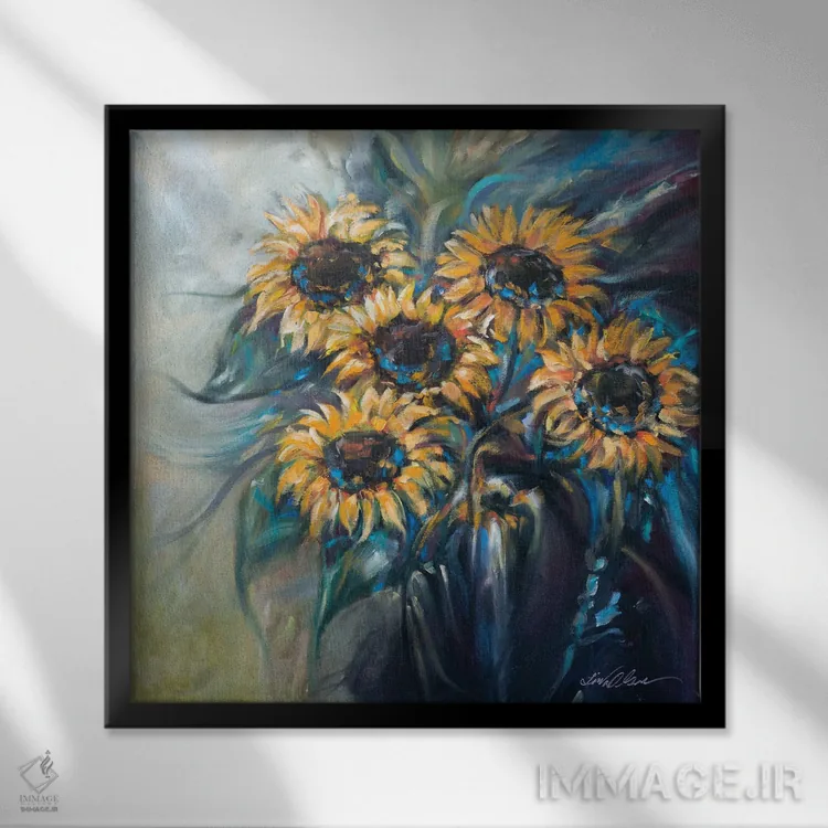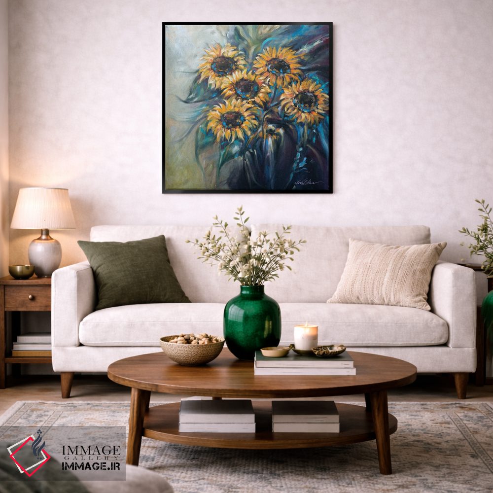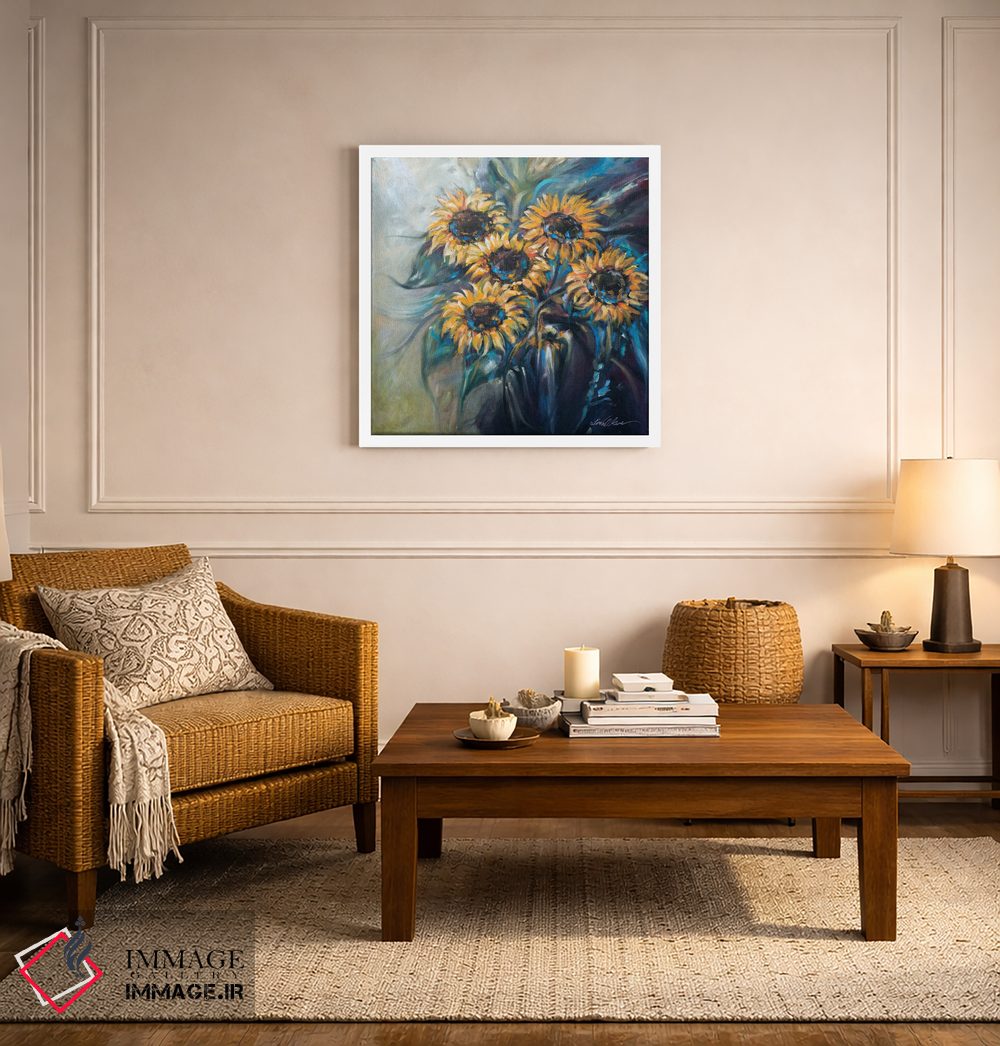 براساس پالت ترکیبی اثر، قاب تیک گرم (چوبی) پیشنهاد اول است و مشکی مات (فریم متوسط) مکمل. برای سفارشهای پروژهای با ابعاد و قابهای اختصاصی با ایماژ در تماس باشید.