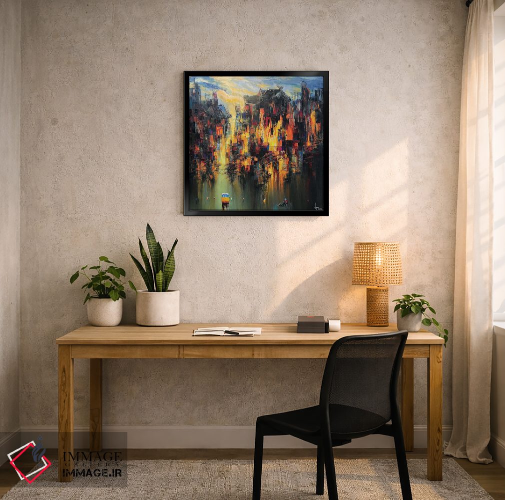 برای گالریوال و چیدمان چندقابی، با ایماژ از طریق تماس—با—ما/">تماس با ما در ارتباط باشید برای اینکه بهترین گزینه را پیدا کنید. بهشرطی که اثر در فضا «پر انرژی و رنگی» دیده شود، نور موضعی ملایم نتیجه را بهتر نشان میدهد و چیدمان را یکدستتر نشان میدهد.