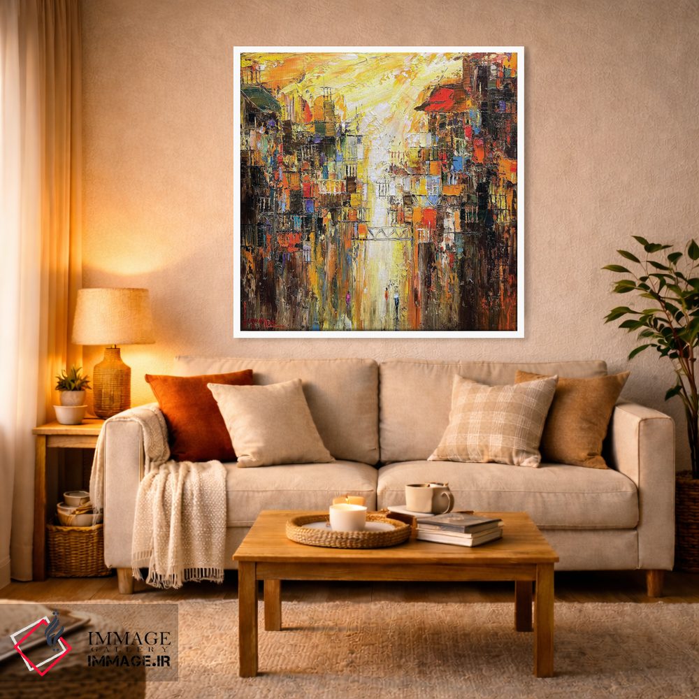 براساس پالت گرم اثر، قاب تیک گرم (چوبی) پیشنهاد اول است و مشکی مات (فریم متوسط) مکمل. برای سفارشهای پروژهای با ابعاد و قابهای اختصاصی با ایماژ در تماس باشید.