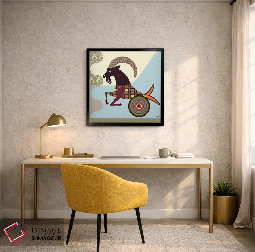 براساس پالت گرم اثر، قاب بلوط روشن (چوبی) پیشنهاد اول است و استخوانی ملایم مکمل. برای سفارشهای پروژهای با ابعاد و قابهای اختصاصی با ایماژ در تماس باشید.
