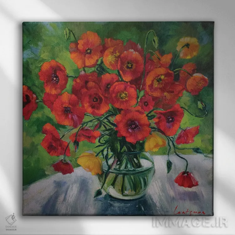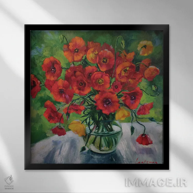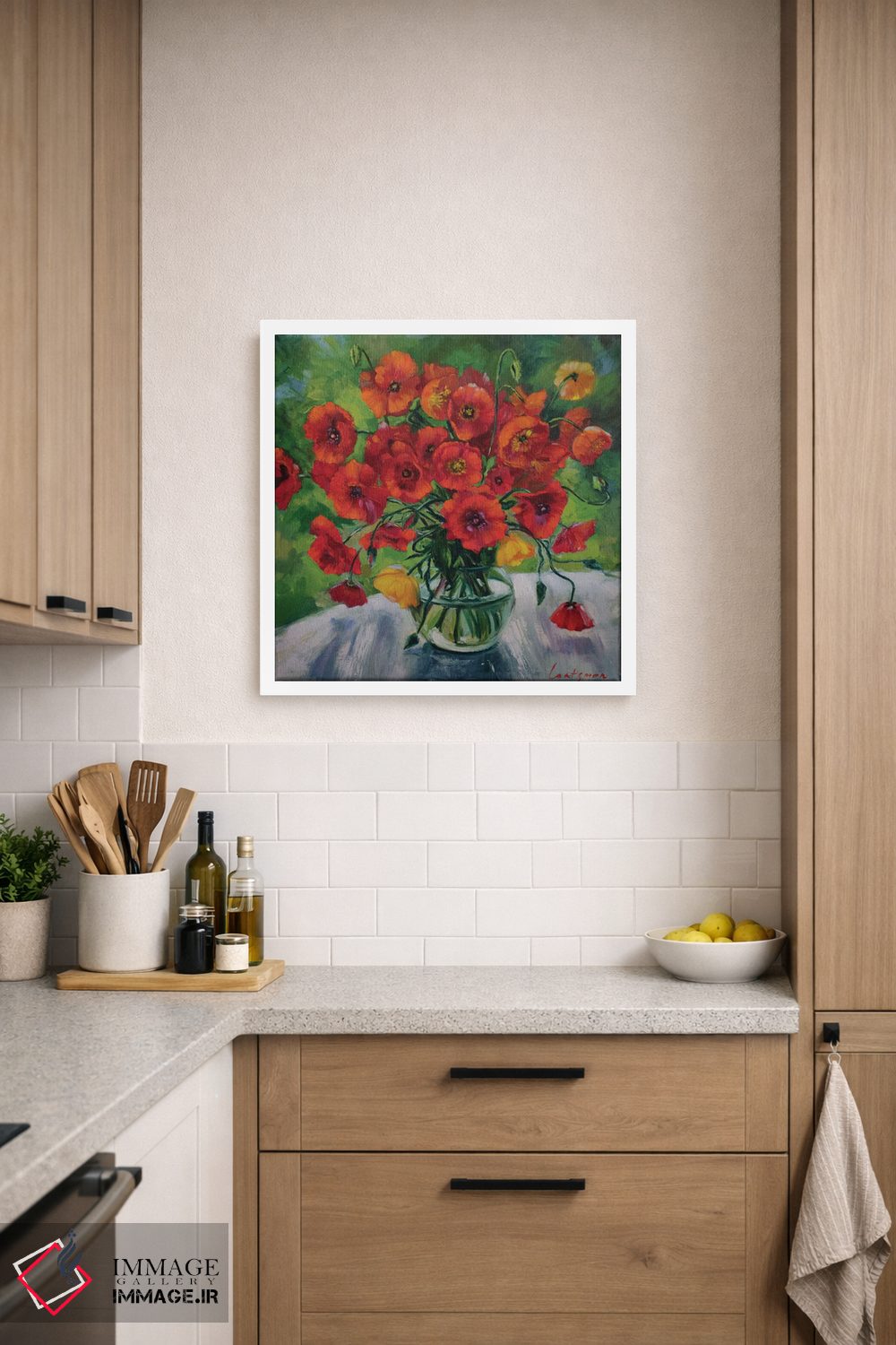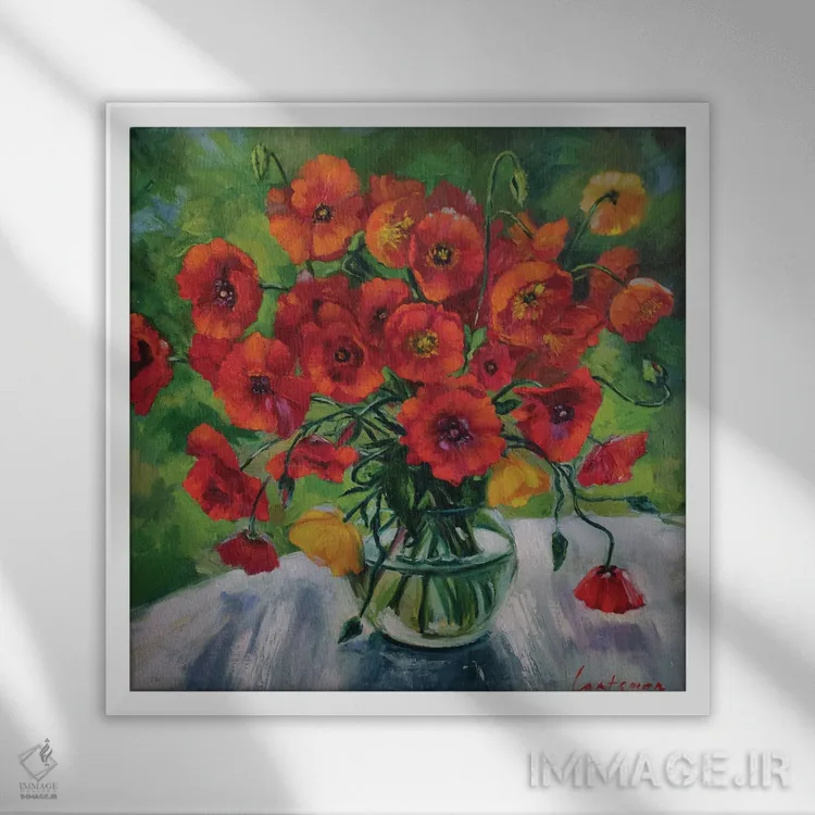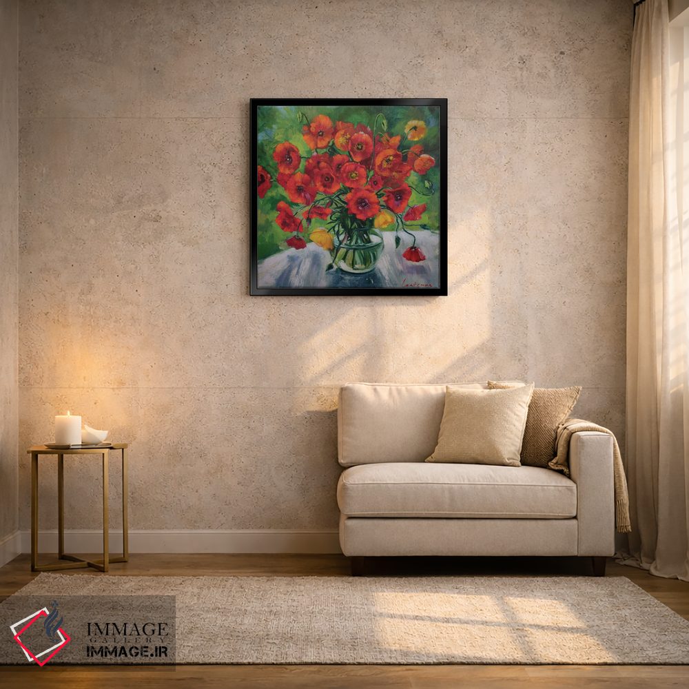 در «گلهای شقایق روشن در گلدان شیشهای» اثرِ «جین لانتسمن»، گلها و گیاهان در کنار چوب و پارچههای روشن، عالی مینشیند؛ برای اتاق خواب انتخابی خوشسلیقه است. حضورش آرام است، اما بیاثر نیست.