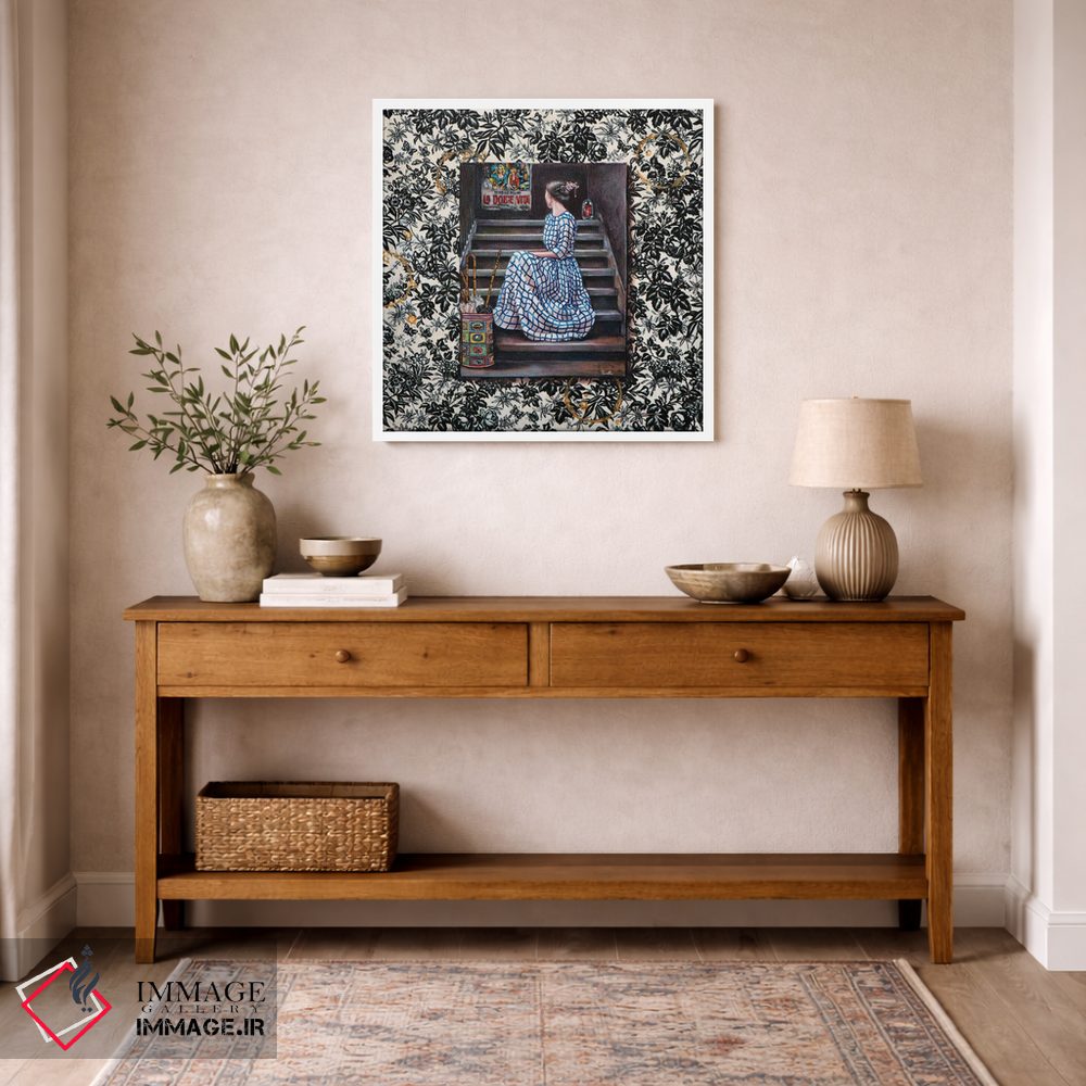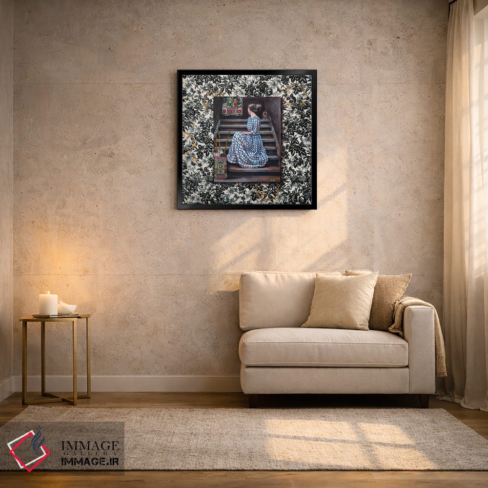 براساس پالت ترکیبی اثر، قاب تیک گرم (چوبی) پیشنهاد اول است و مشکی مات (فریم متوسط) مکمل. برای سفارشهای پروژهای با ابعاد و قابهای اختصاصی با ایماژ در تماس باشید.