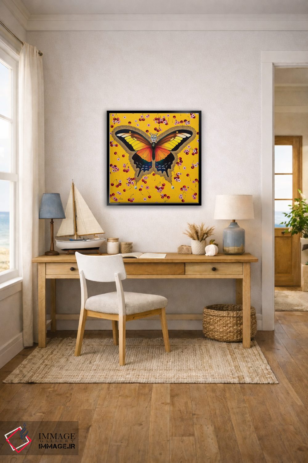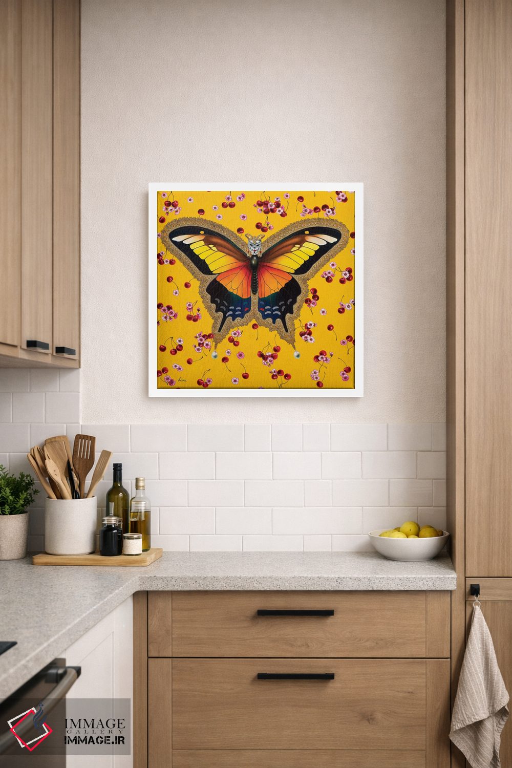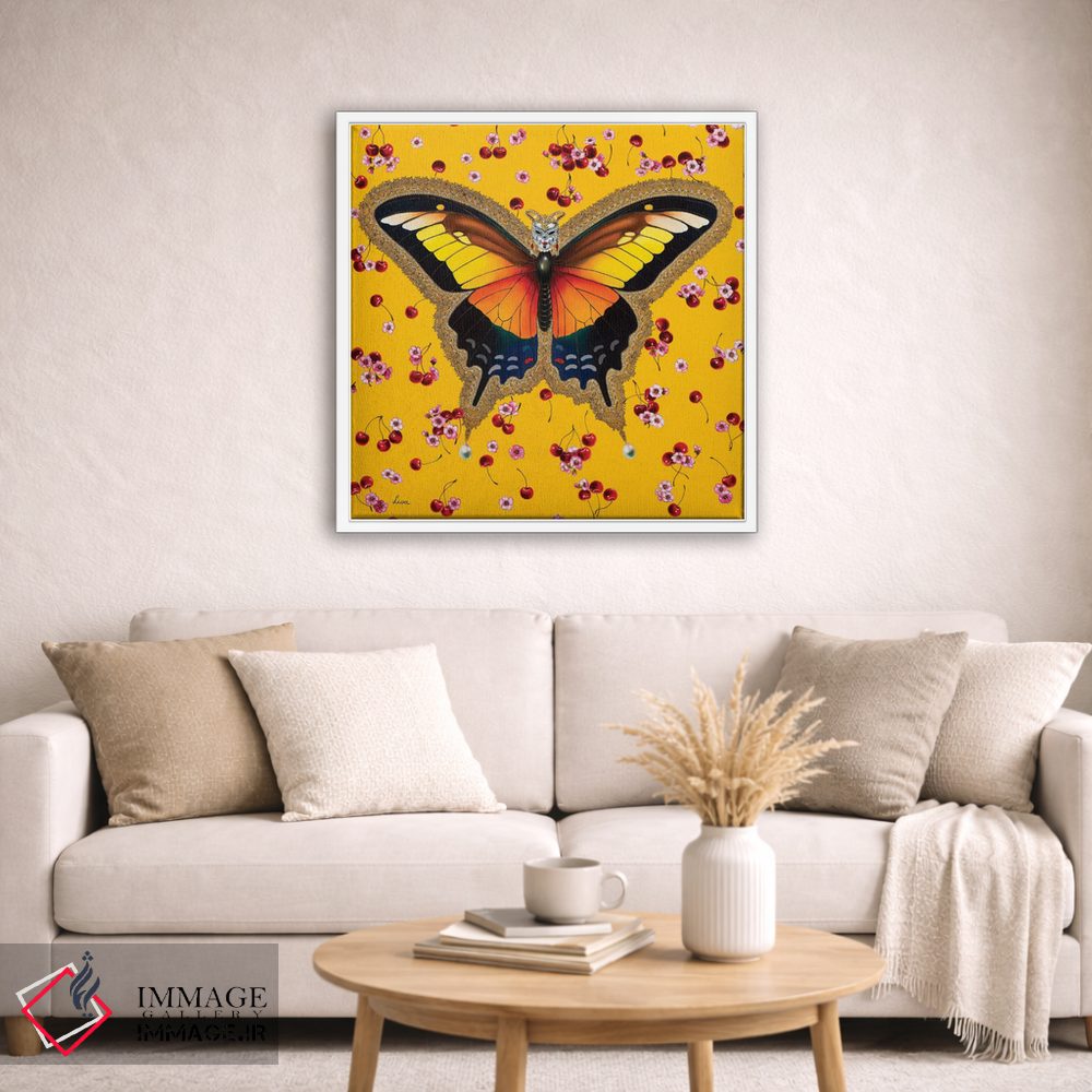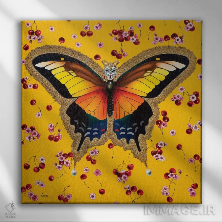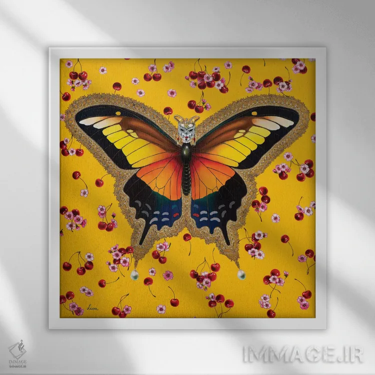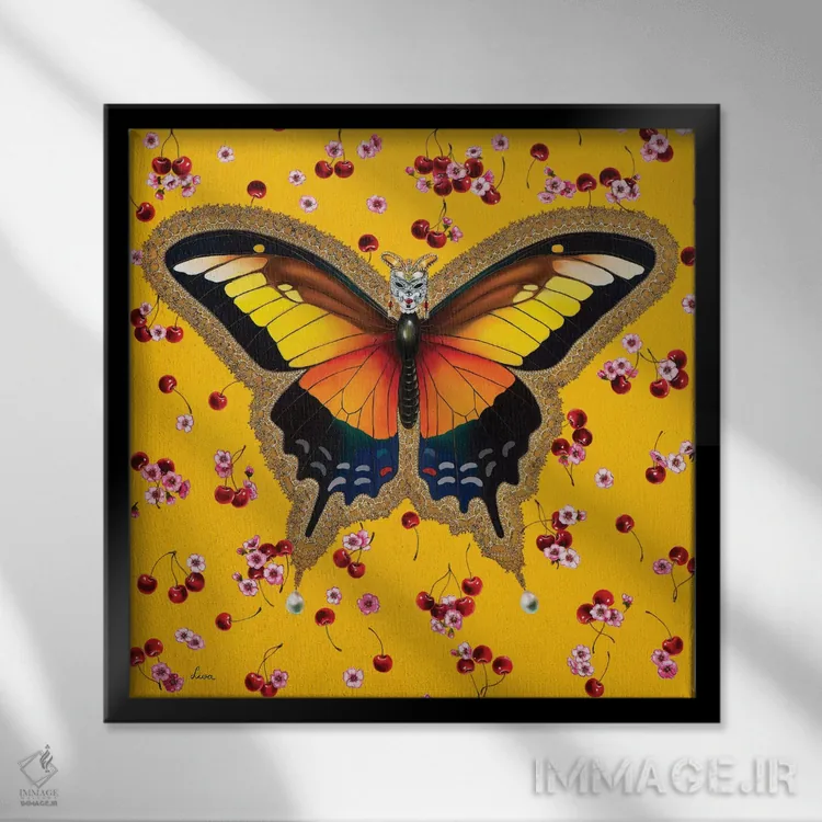 تابلو دکوراتیو "پروانه با گیلاس" اثر لیوا پاکالنه فانلی