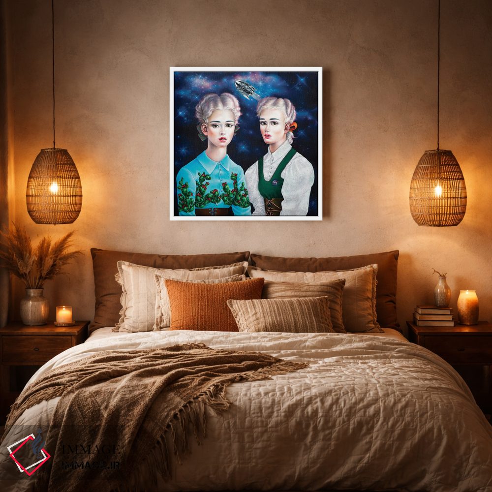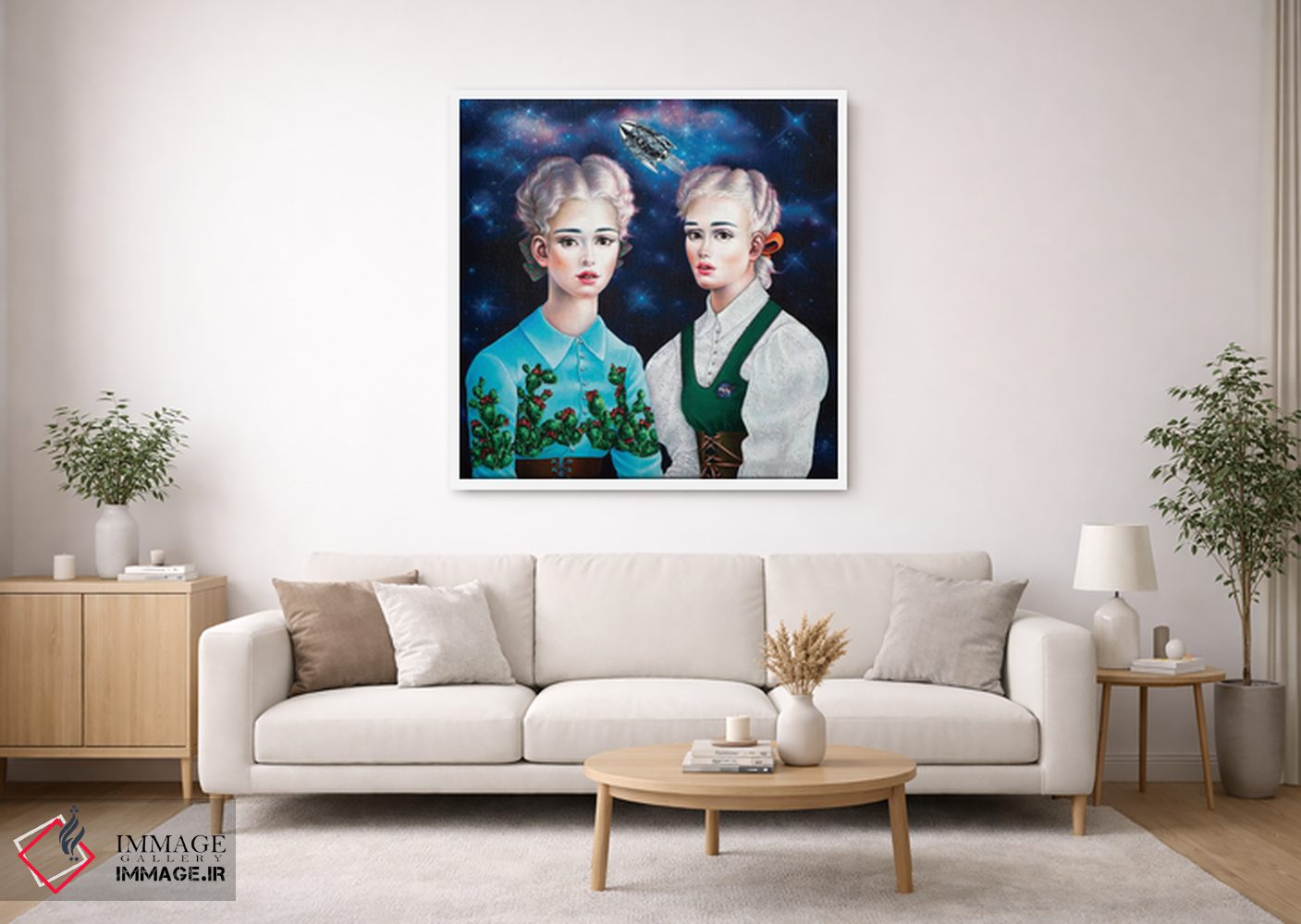 طراحی بوم گالری ایماژ بهگونهای است که اثر روی دیوار «پرداختشده» و حرفهای دیده شود—نه پرزرقوبرقِ بیپایه؛ بلکه دقیق و خوشپرداخت. بافت ظریف کنواس کمک میکند حس اثر هنری را در نگاه نزدیک نگه میدارد بدون اغراق؛ فقط دقیقتر. در کنترل تونها، کمک میکند رنگها روی دیوار واقعیتر بنشینند. حاصل کار، یک تابلو خوشنشین است که هم از دور اثرگذار است و هم از نزدیک خوشخوان؛ همراهِ نورپردازی درست، جلوهی گالریوار بیشتری حس میشود.