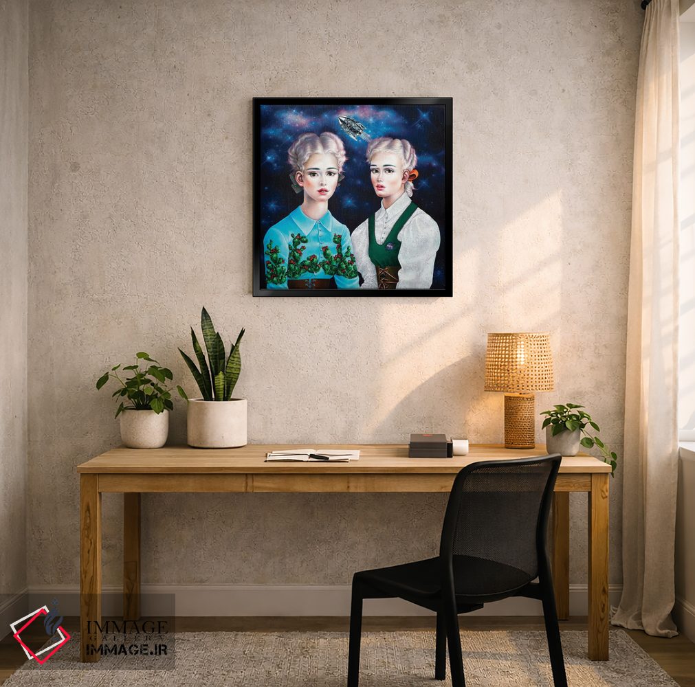 براساس پالت ترکیبی اثر، قاب تیک گرم (چوبی) پیشنهاد اول است و مشکی مات (فریم متوسط) مکمل. برای سفارشهای پروژهای با ابعاد و قابهای اختصاصی با ایماژ در تماس باشید.