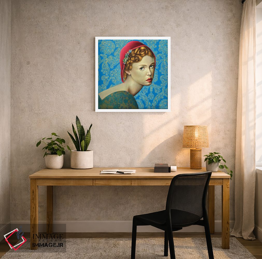 براساس پالت ترکیبی اثر، قاب تیک گرم (چوبی) پیشنهاد اول است و مشکی مات (فریم متوسط) مکمل. برای سفارشهای پروژهای با ابعاد و قابهای اختصاصی با ایماژ در تماس باشید.
