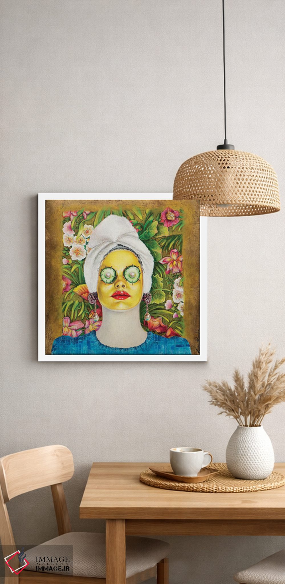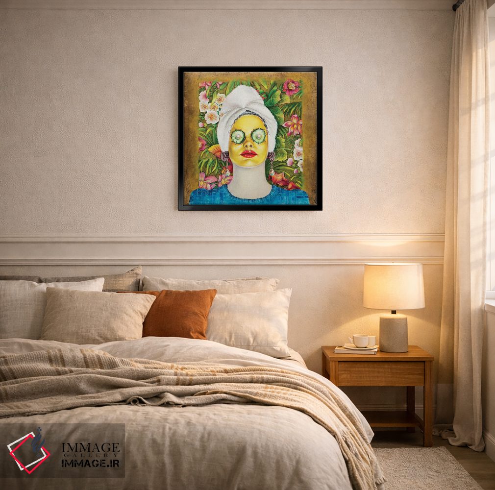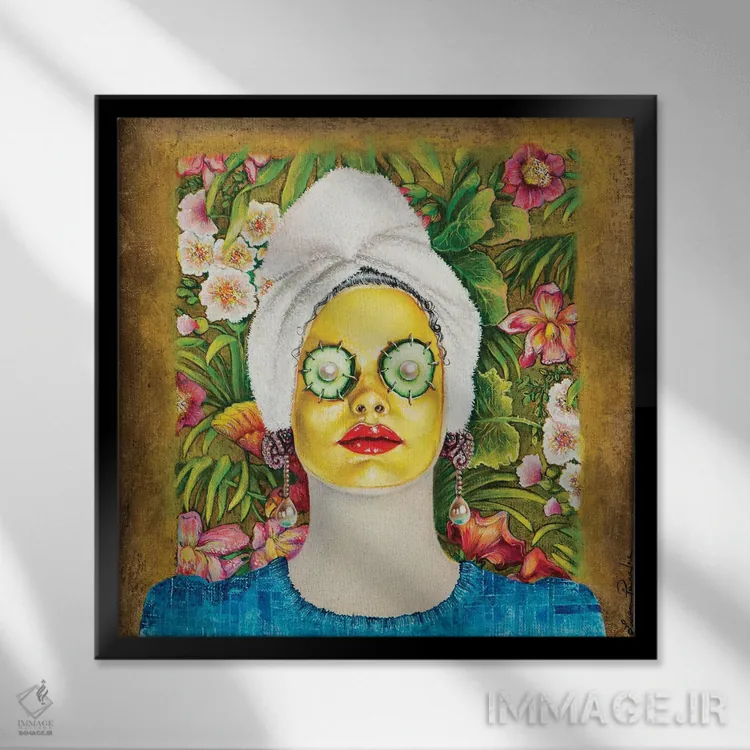 تابلو دکوراتیو دختری با ماسک طلایی صورت اثر لیوا پاکالنه فانلی - نمای پرسپکتیو محصول