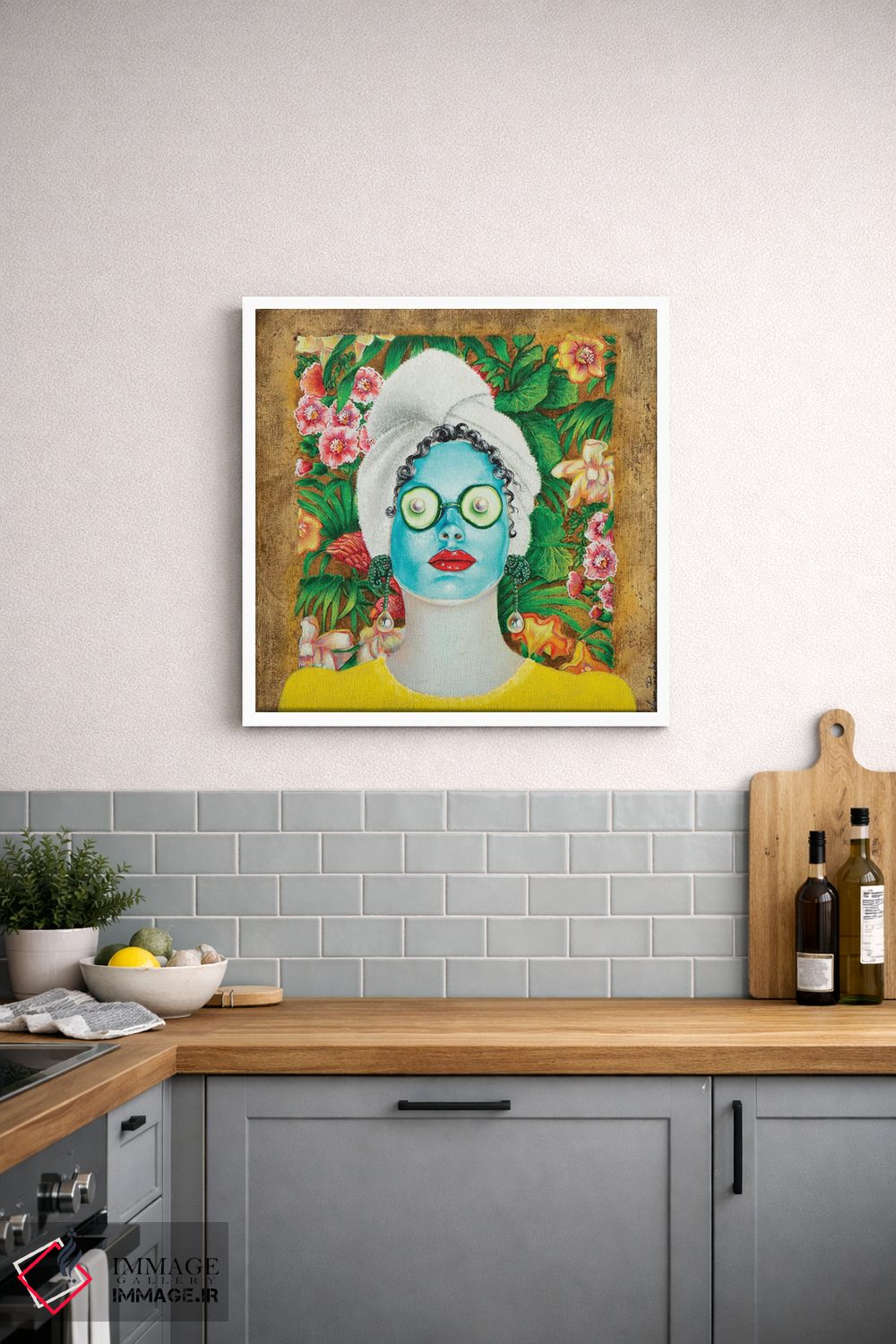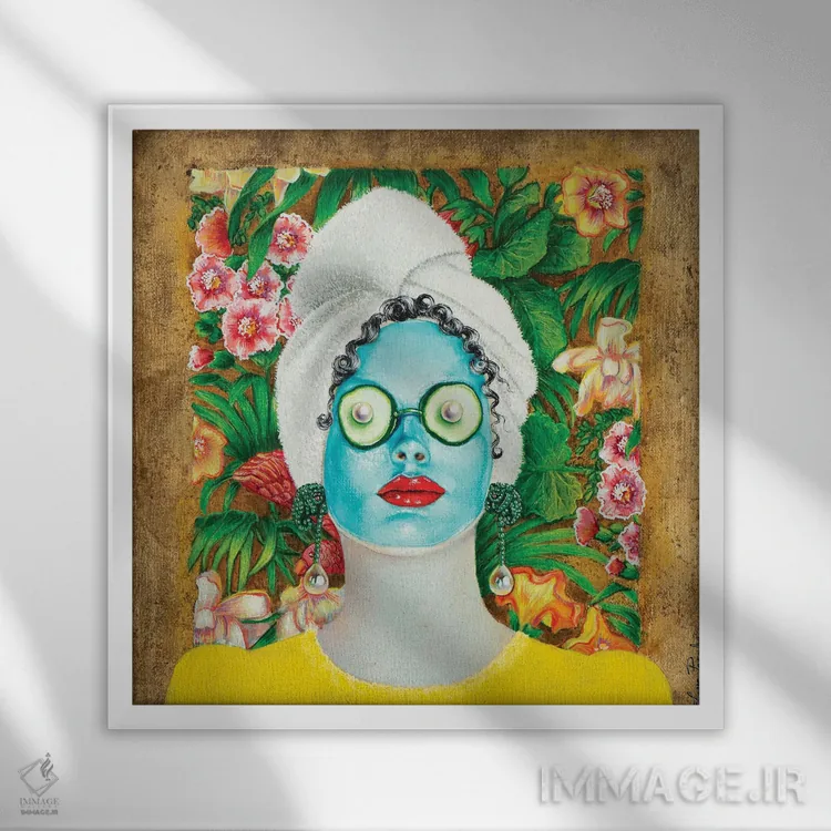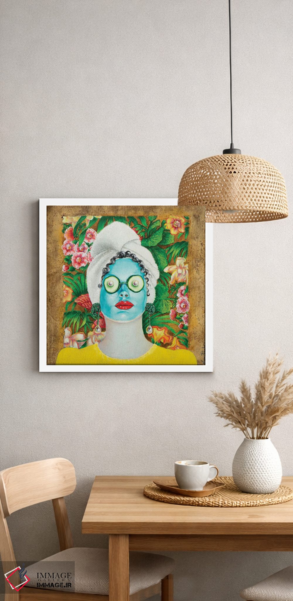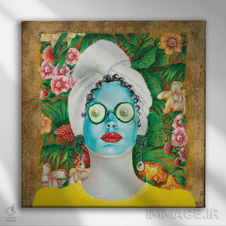 تابلو دکوراتیو دختری با ماسک فیروزه ای صورت اثر لیوا پاکالنه فانلی