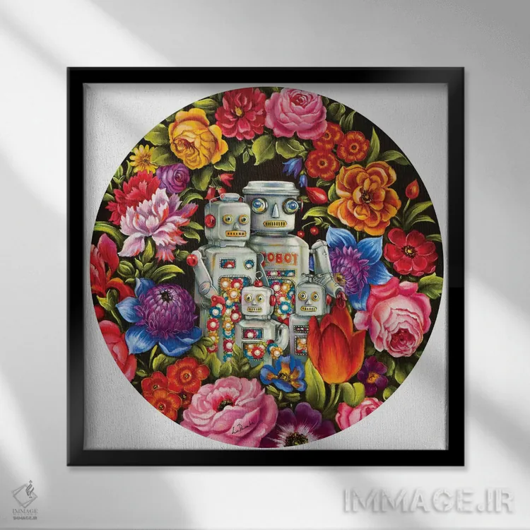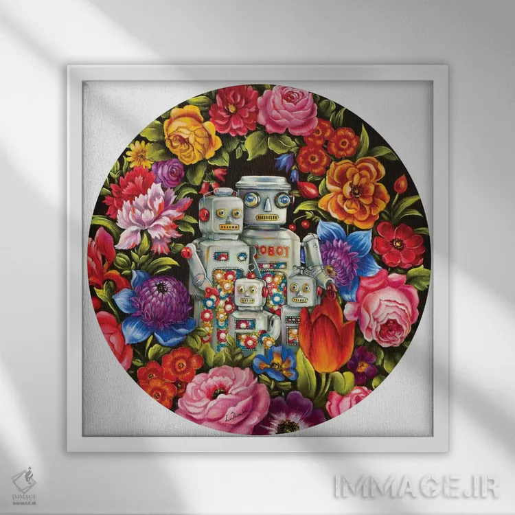براساس پالت ترکیبی اثر، قاب تیک گرم (چوبی) پیشنهاد اول است و مشکی مات (فریم متوسط) مکمل. برای سفارشهای پروژهای با ابعاد و قابهای اختصاصی با ایماژ در تماس باشید.