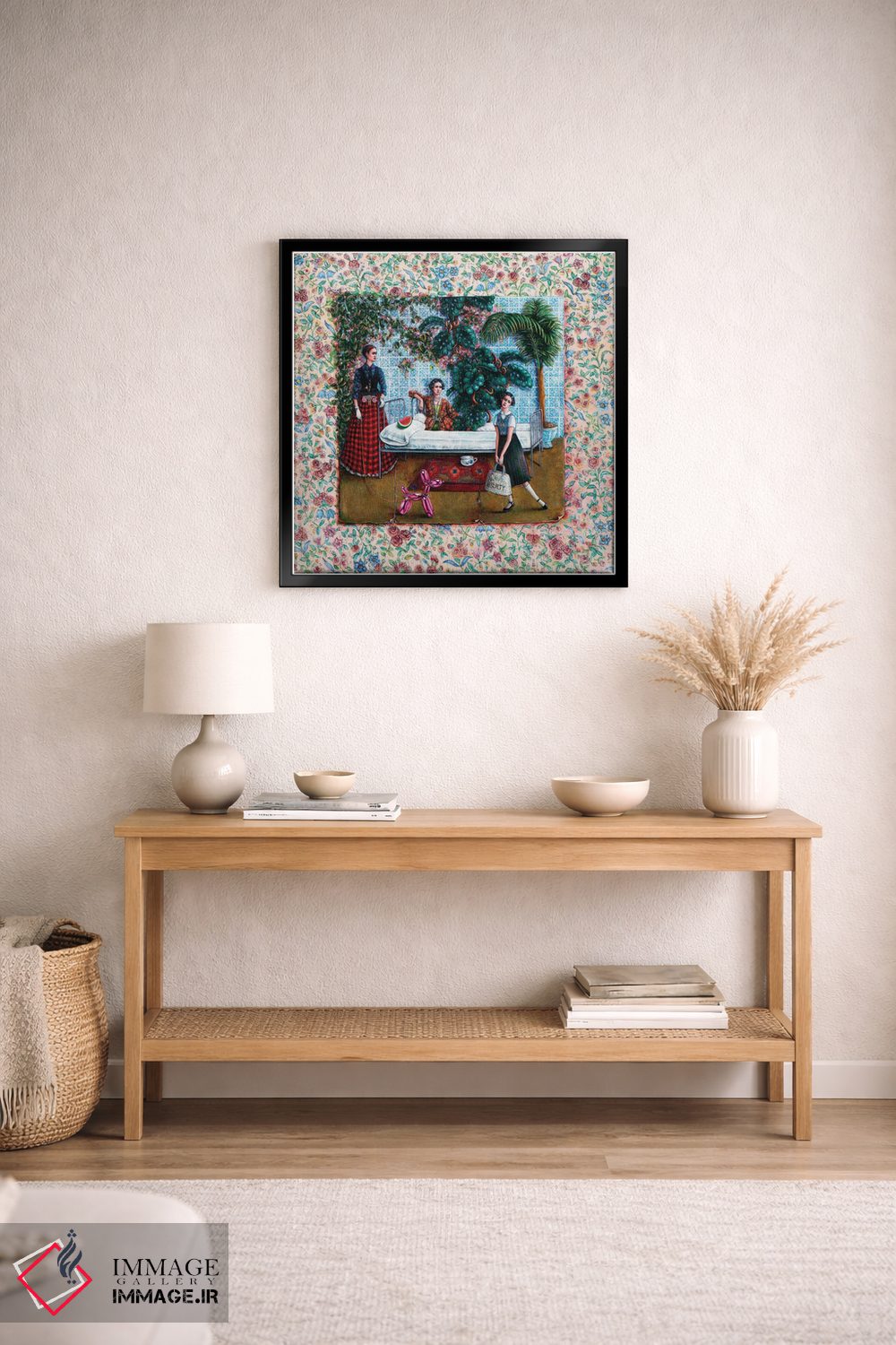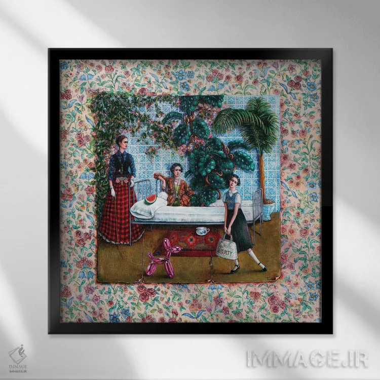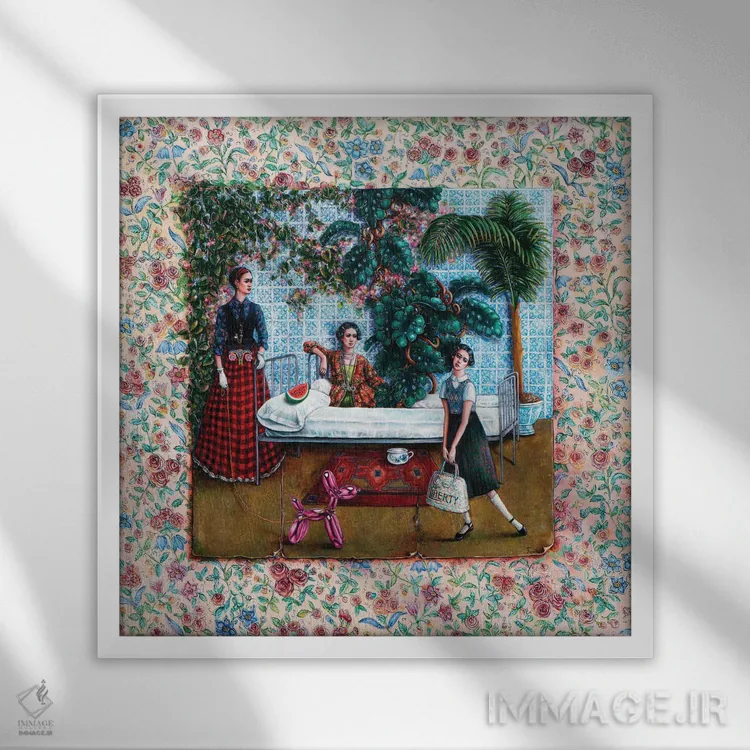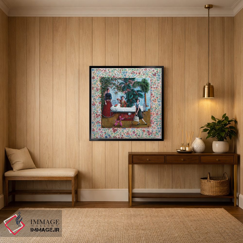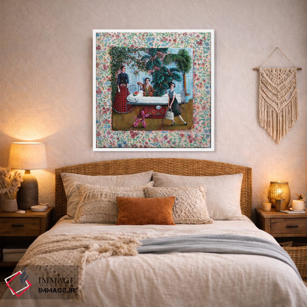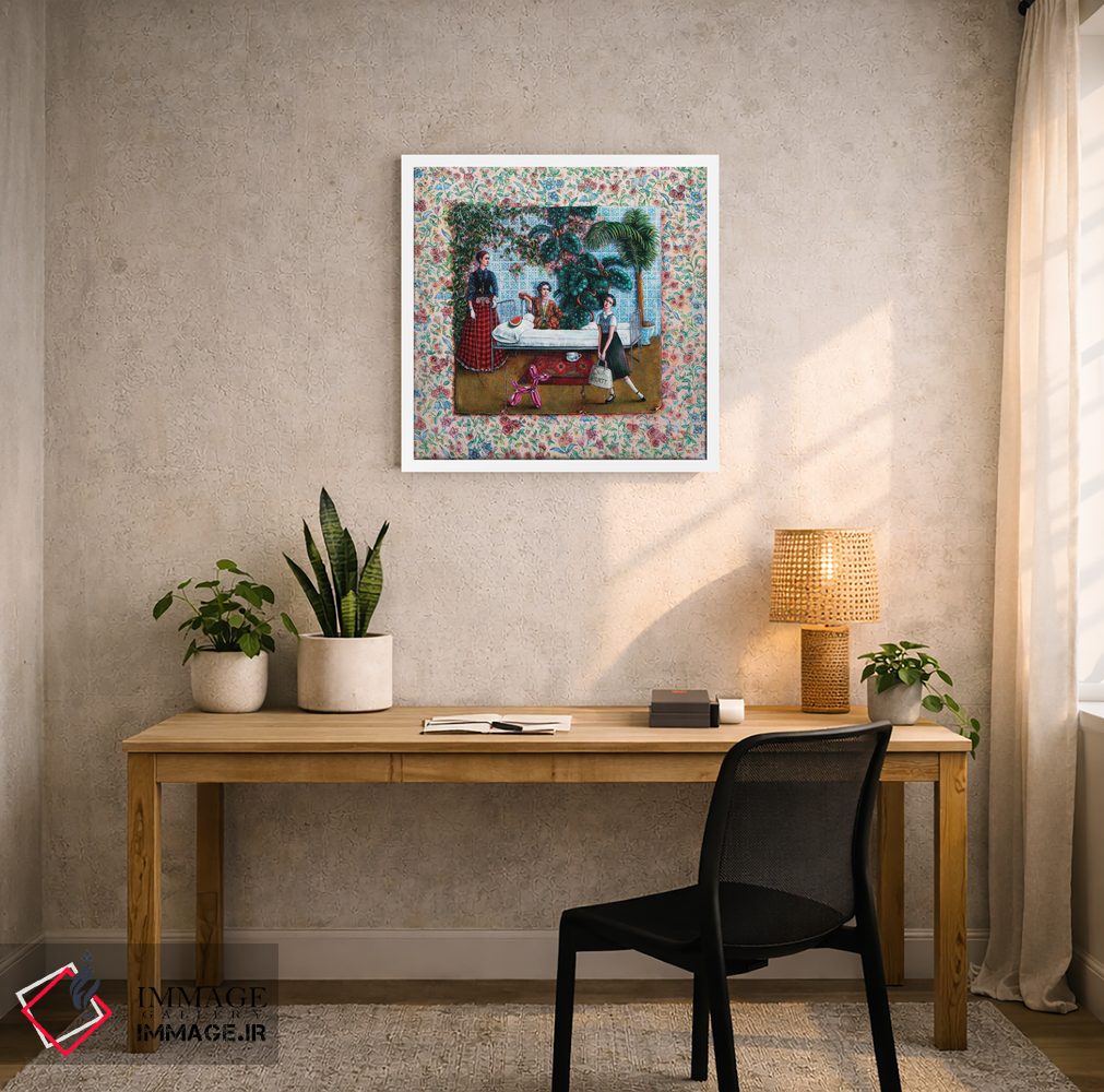 براساس پالت ترکیبی اثر، قاب تیک گرم (چوبی) پیشنهاد اول است و مشکی مات (فریم متوسط) مکمل. برای سفارشهای پروژهای با ابعاد و قابهای اختصاصی با ایماژ در تماس باشید.
