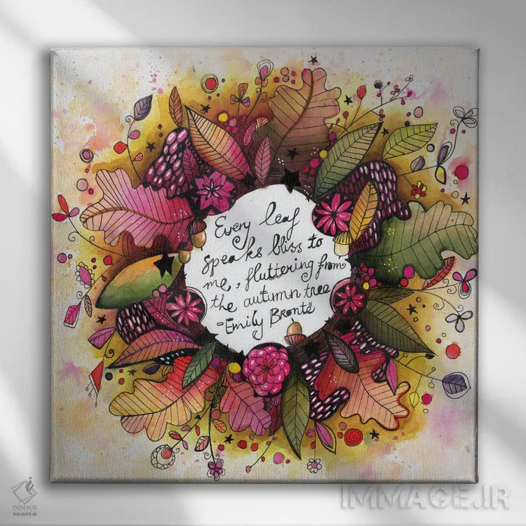 تابلو دکوراتیو حلقه گل پاییزی جدید با نقل قول اثر تامارا لاپورت - نمای نزدیک بافت بوم