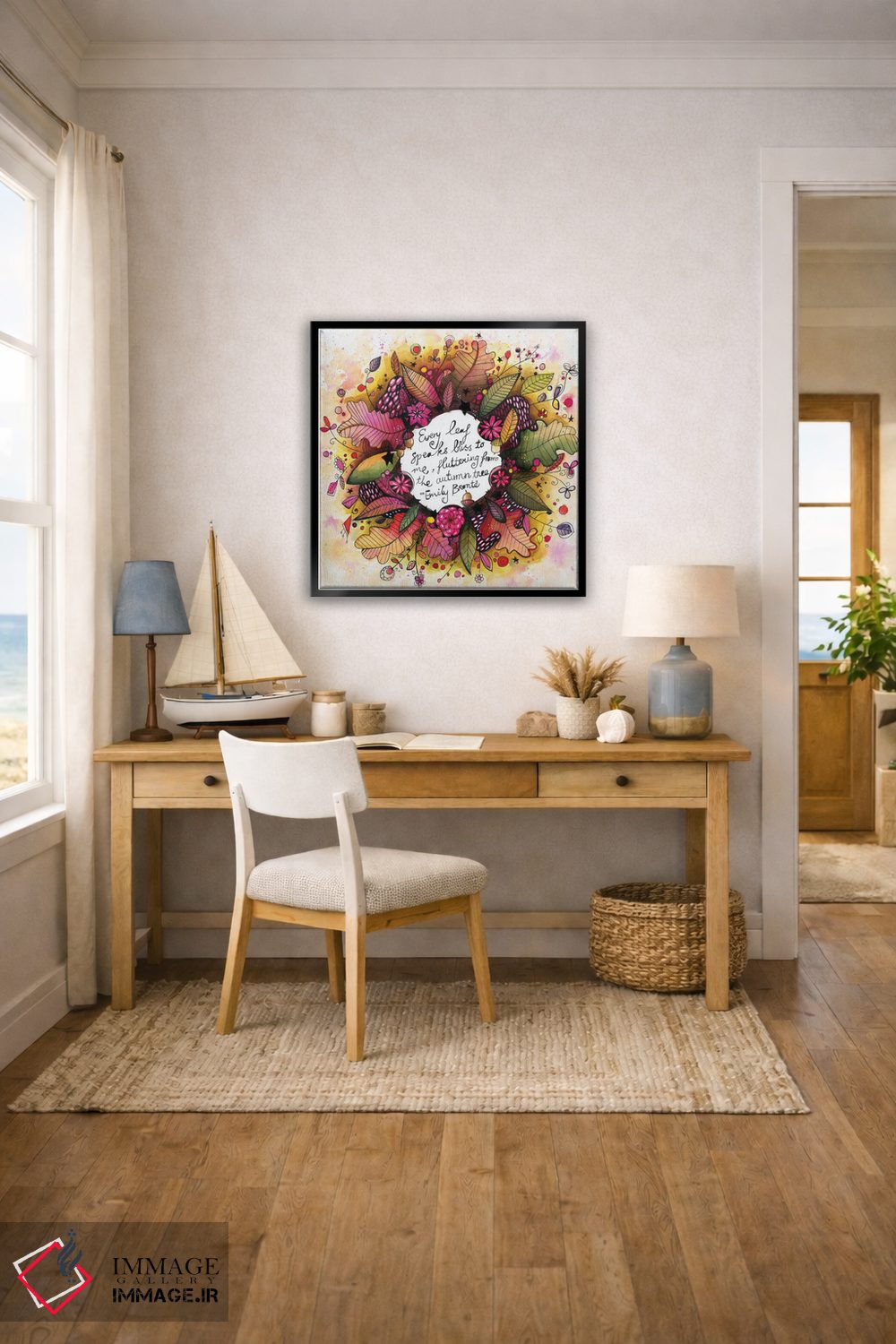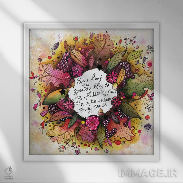 تابلو دکوراتیو حلقه گل پاییزی جدید با نقل قول اثر تامارا لاپورت