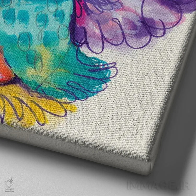 تابلو دکوراتیو خرس عروسکی با پرنده عجیب اثر تامارا لاپورت - نمای نزدیک بافت بوم