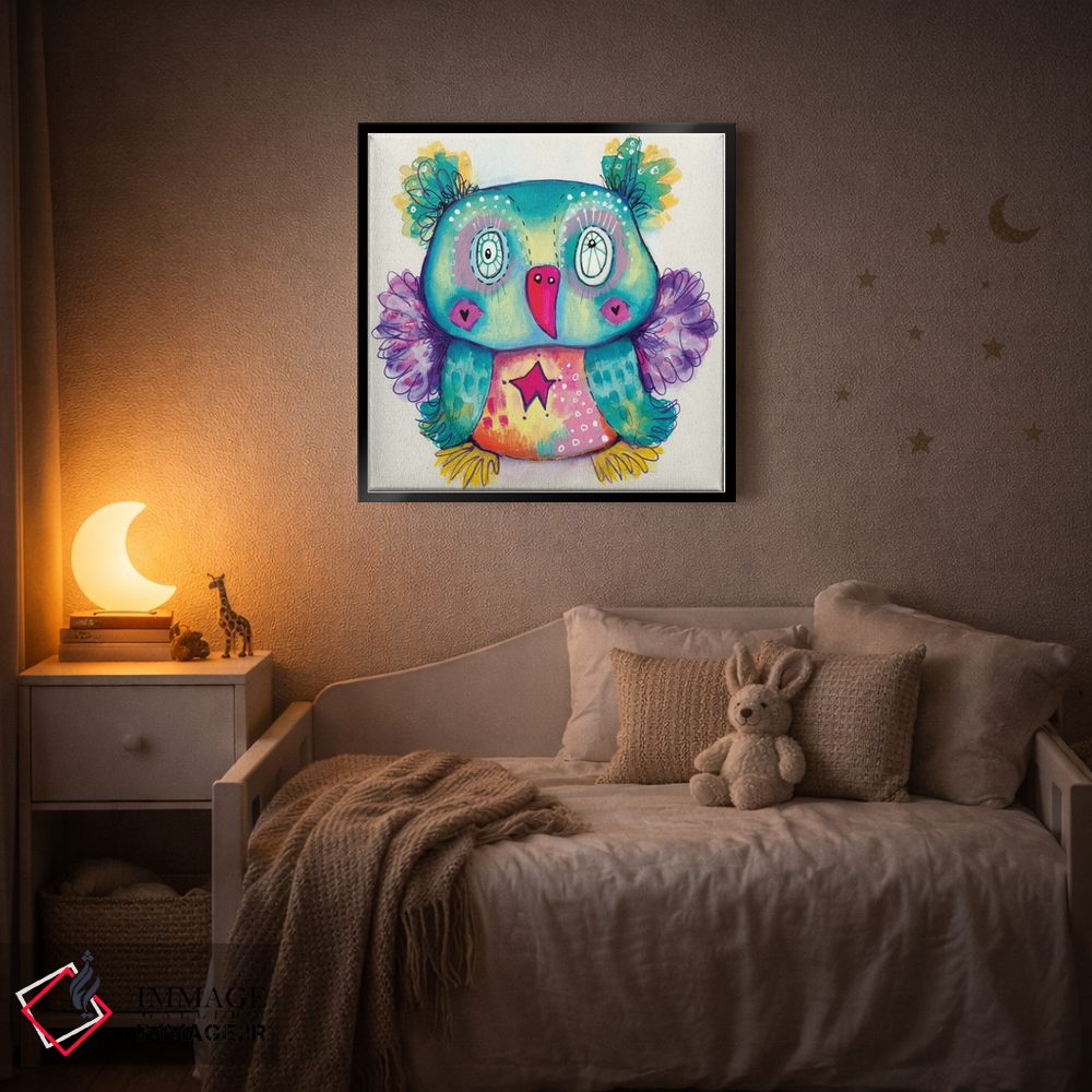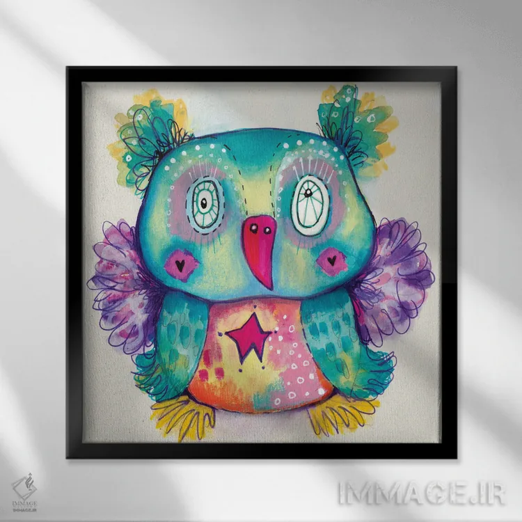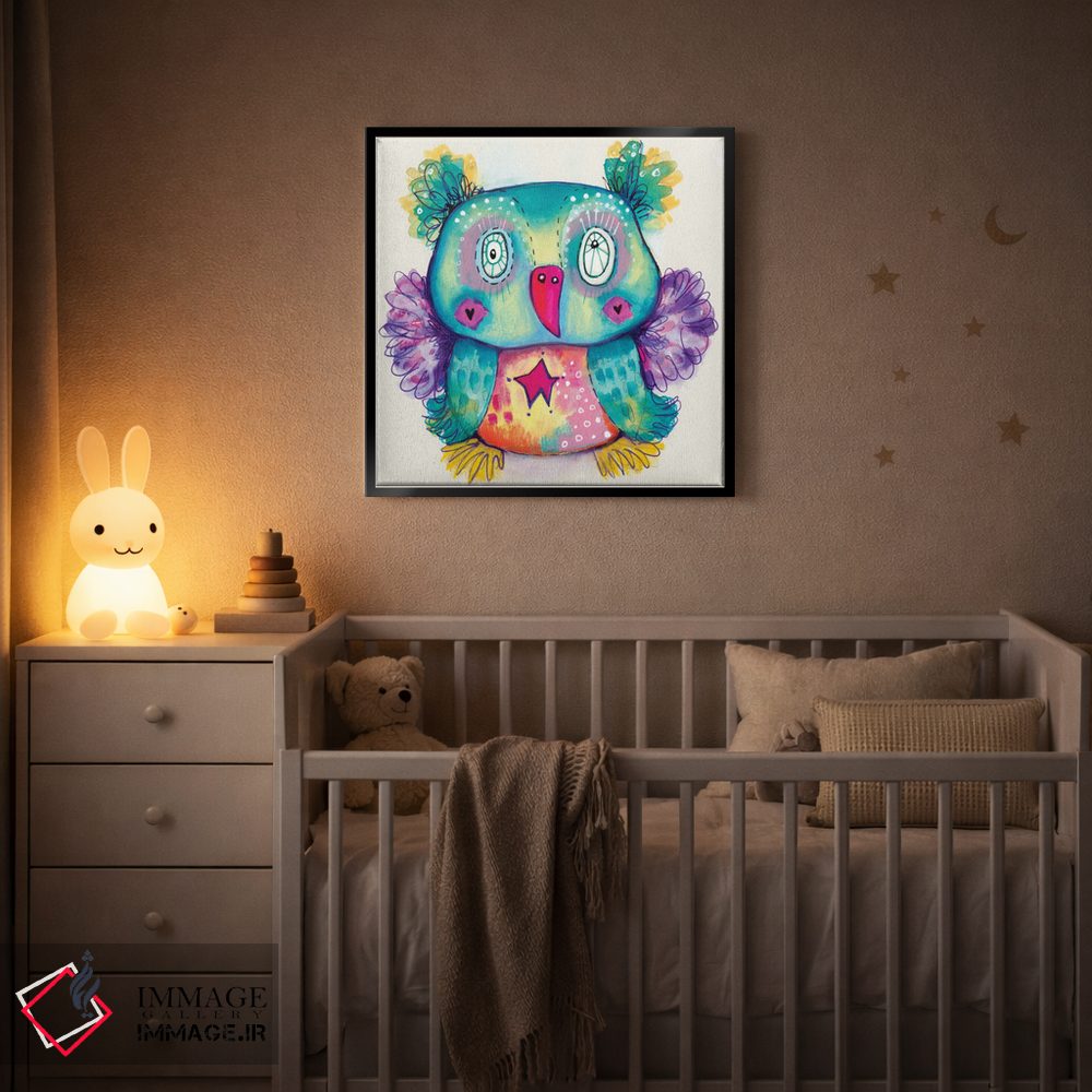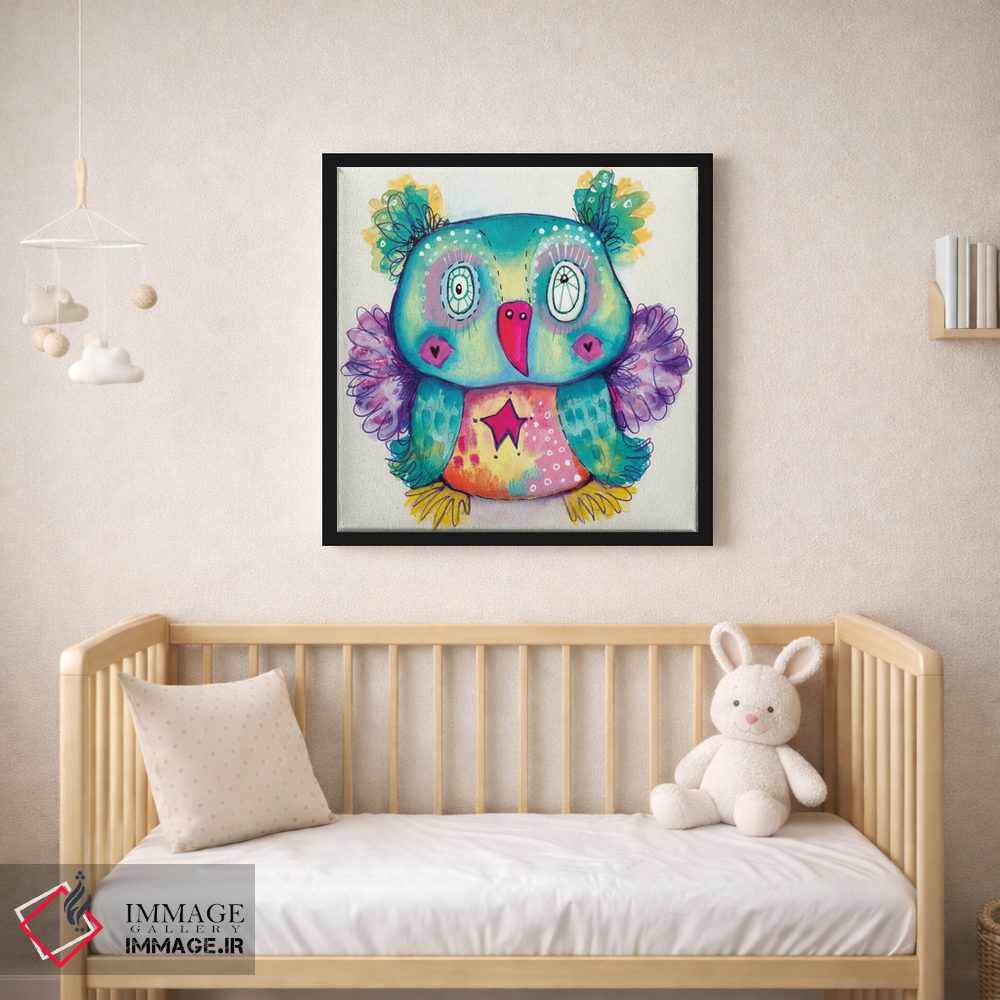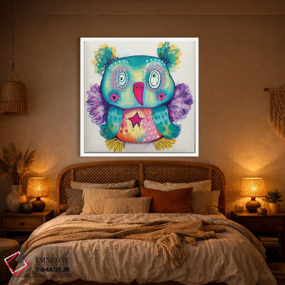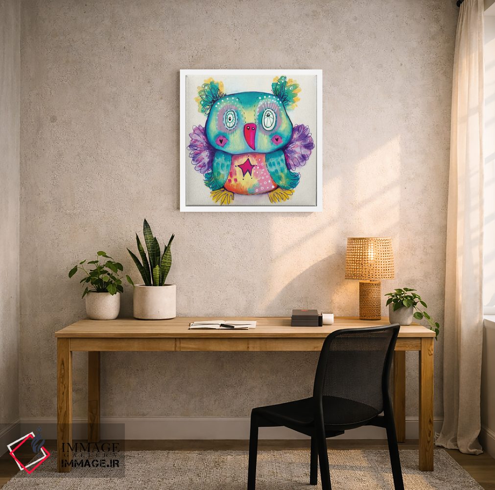 تابلو دکوراتیو خرس عروسکی با پرنده عجیب اثر تامارا لاپورت - نمای پرسپکتیو محصول