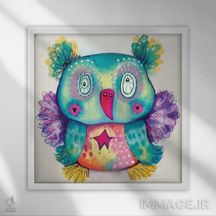 تابلو دکوراتیو خرس عروسکی با پرنده عجیب اثر تامارا لاپورت