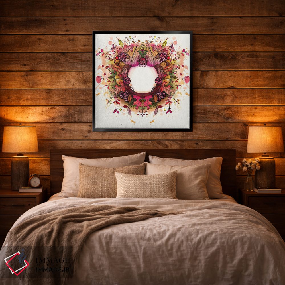 براساس پالت گرم اثر، قاب تیک گرم (چوبی) پیشنهاد اول است و مشکی مات (فریم متوسط) مکمل. برای سفارشهای پروژهای با ابعاد و قابهای اختصاصی با ایماژ در تماس باشید.
