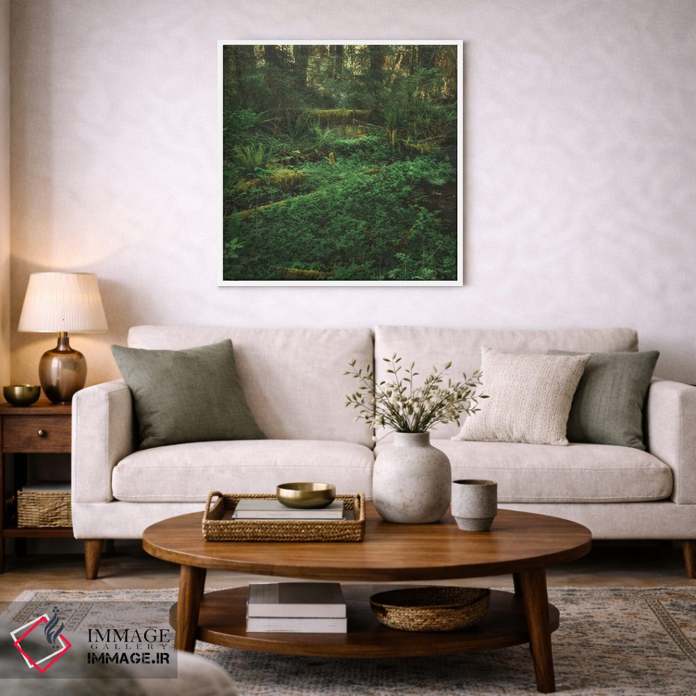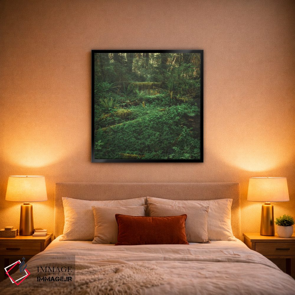 ترکیب این اثر با سبک پرداختِ هنری یعنی طراوتِ کنترلشده؛ دقیقاًً چیزی که یک دیوار شیک لازم دارد—«جنگل بارانی المپیک (پارک ملی المپیک، آمریکا)» اثرِ «لوئیس راث».