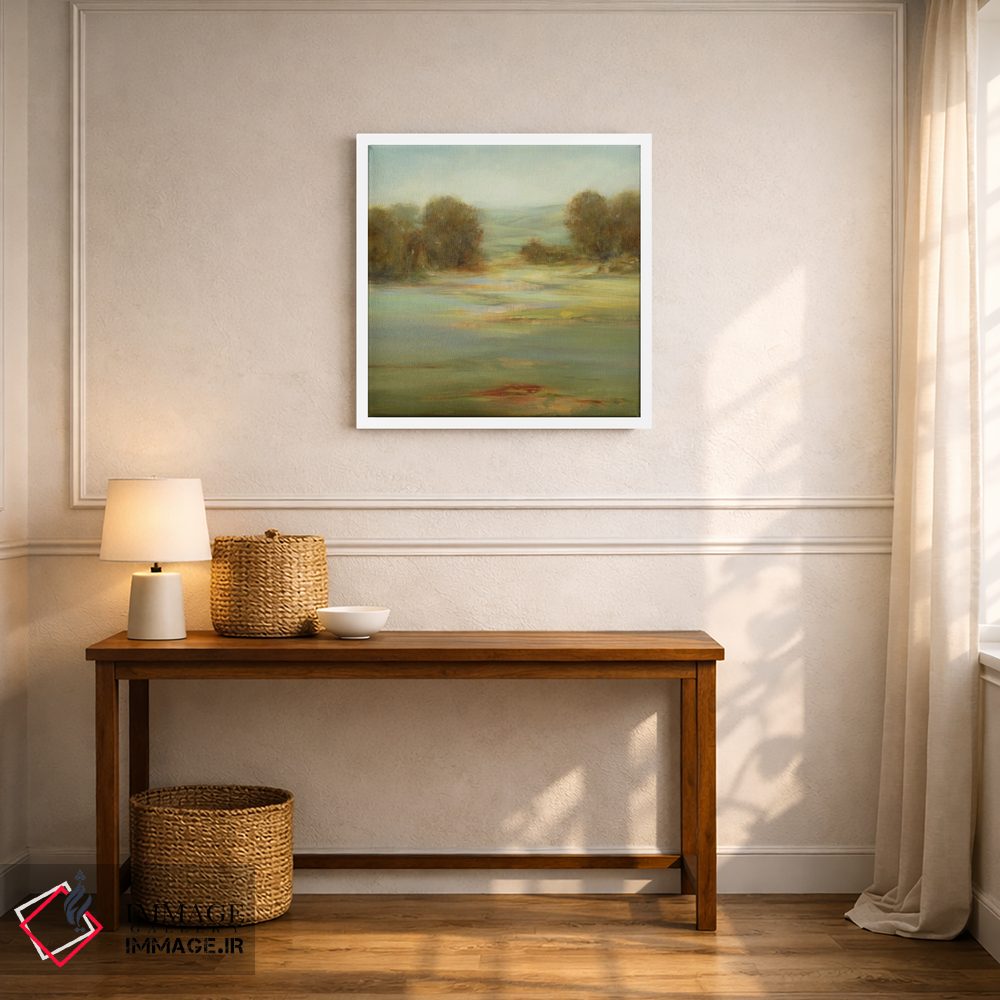 براساس پالت ترکیبی اثر، قاب بلوط روشن (چوبی) پیشنهاد اول است و استخوانی ملایم مکمل. برای سفارشهای پروژهای با ابعاد و قابهای اختصاصی با ایماژ در تماس باشید.