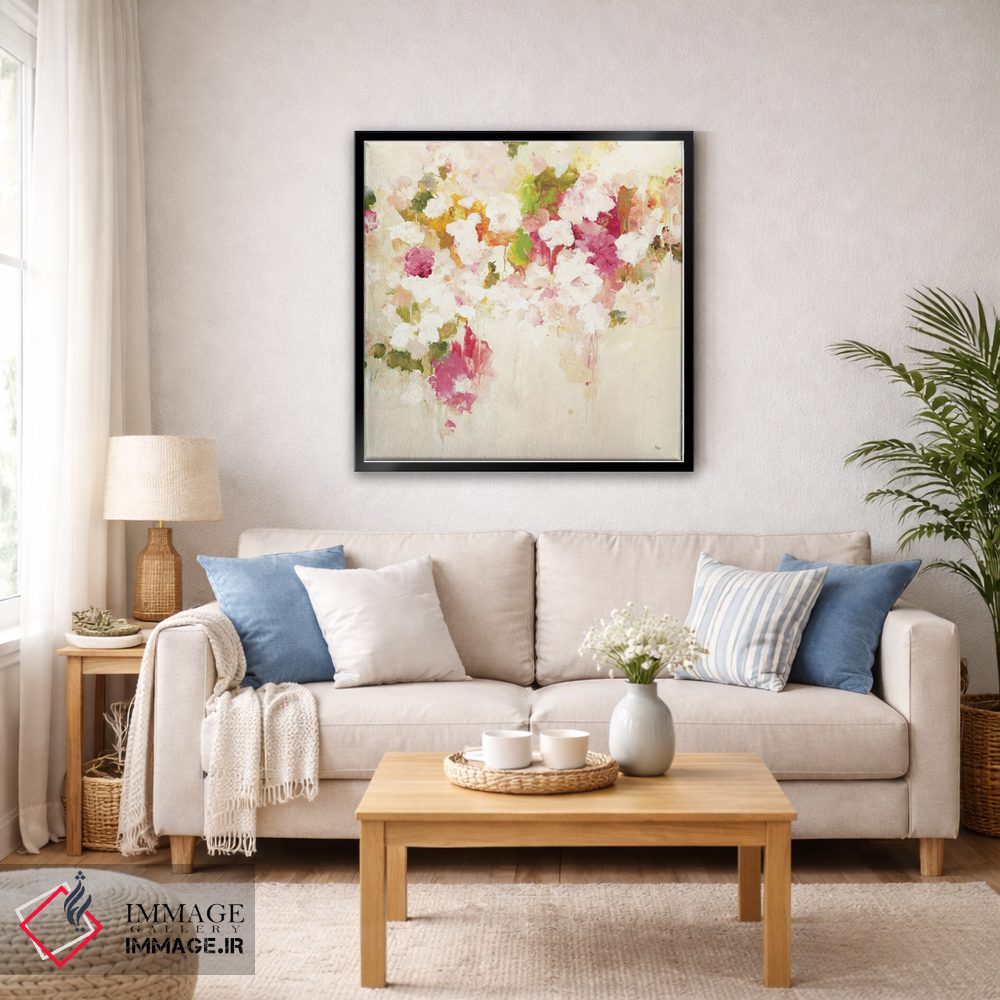 تابلو انتزاعی الهام گر گل ها ۳ اثر لیزا ریجرز - نمای روبه‌رو روی دیوار