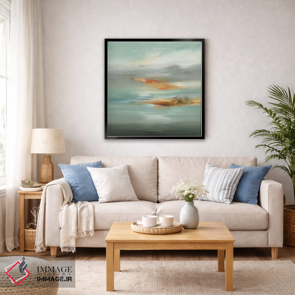 تابلو انتزاعی به سوی دوردست دو اثر لیزا ریجرز - نمای قاب‌دار سفید