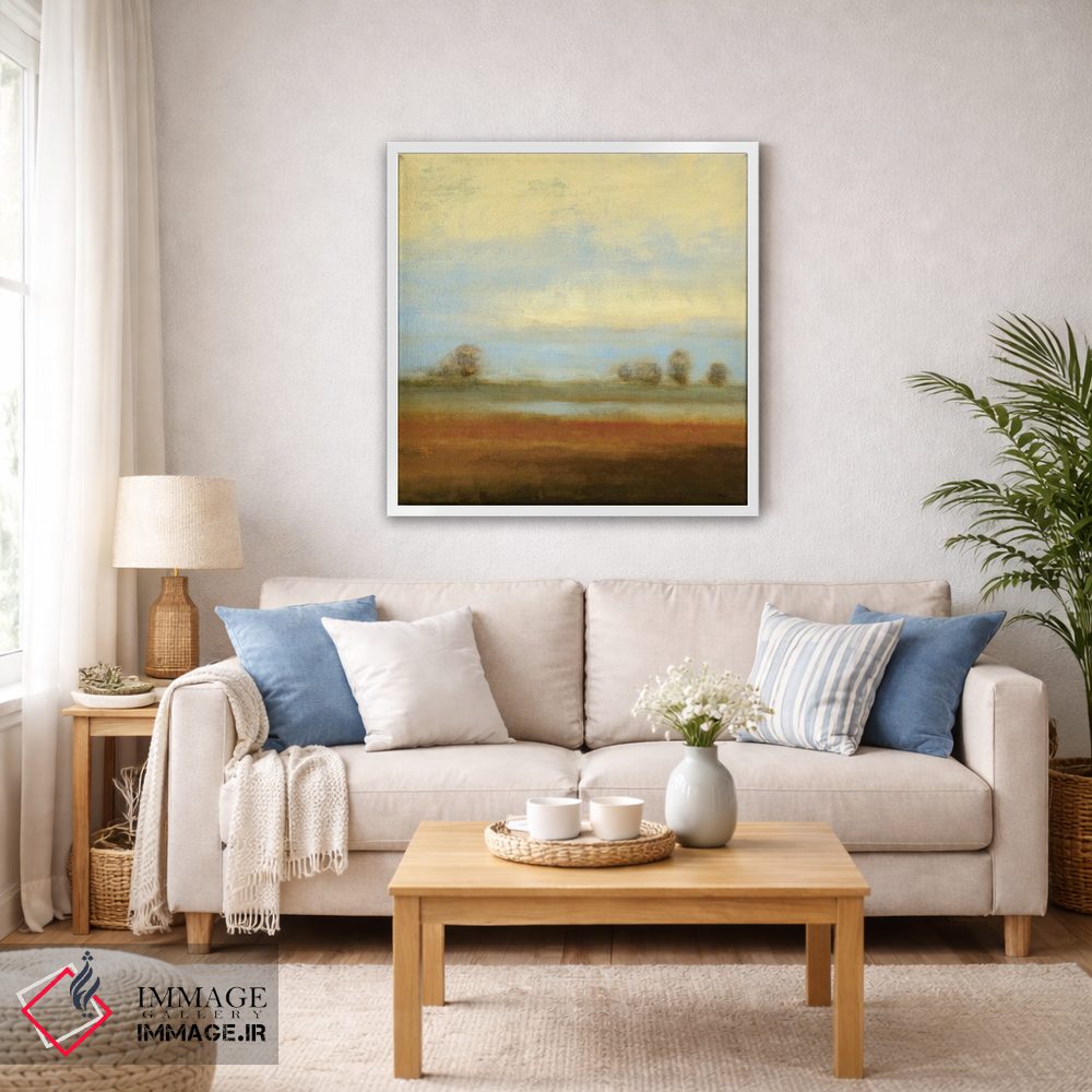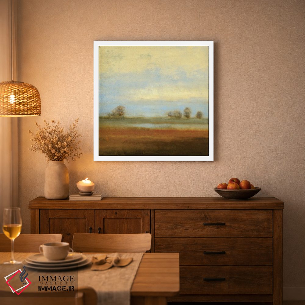 تابلو انتزاعی صحنه معاصر هشت اثر لیزا ریجرز - نمای قاب‌دار سفید