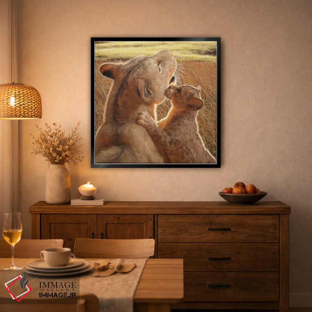 براساس پالت گرم اثر، قاب تیک گرم (چوبی) پیشنهاد اول است و مشکی مات (فریم متوسط) مکمل. برای سفارشهای پروژهای با ابعاد و قابهای اختصاصی با ایماژ در تماس باشید.