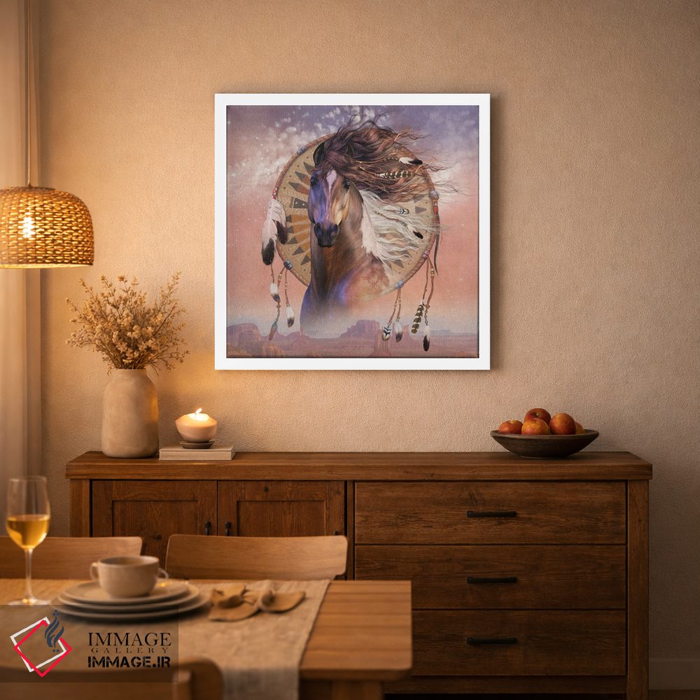 بوم گالری ایماژ طوری طراحی شده که اثر روی دیوار «پرداختشده» و حرفهای دیده شود—نه پرزرقوبرقِ بیپایه؛ بلکه دقیق و خوشپرداخت. بافت ظریف کنواس کمک میکند حس اثر هنری را در نگاه نزدیک نگه میدارد. قابپذیری باعث میشود هماهنگی قاب با پالت رنگ جلوه را تقویت میکند و نتیجه را یکدستتر میکند. حاصل کار، یک تابلو خوشنشین است که هم از دور اثرگذار است و هم از نزدیک خوشخوان؛ در کنار نورپردازی درست، جلوهی گالریوار بیشتری حس میشود.