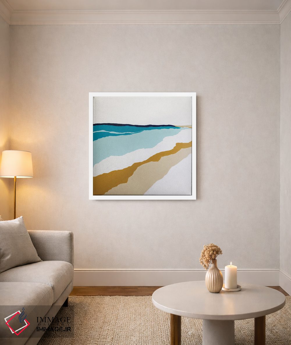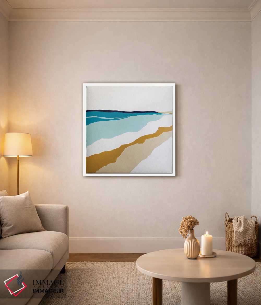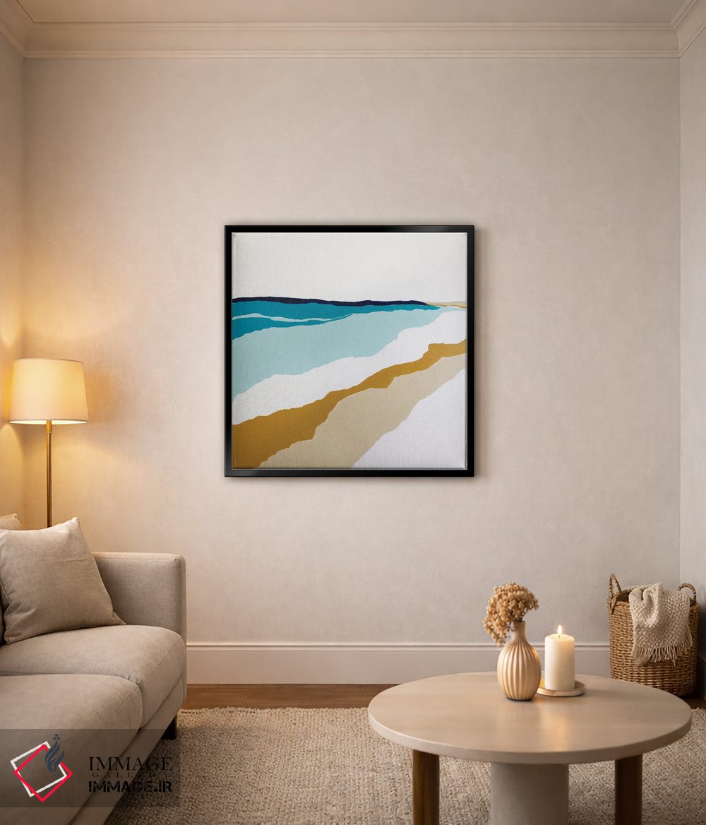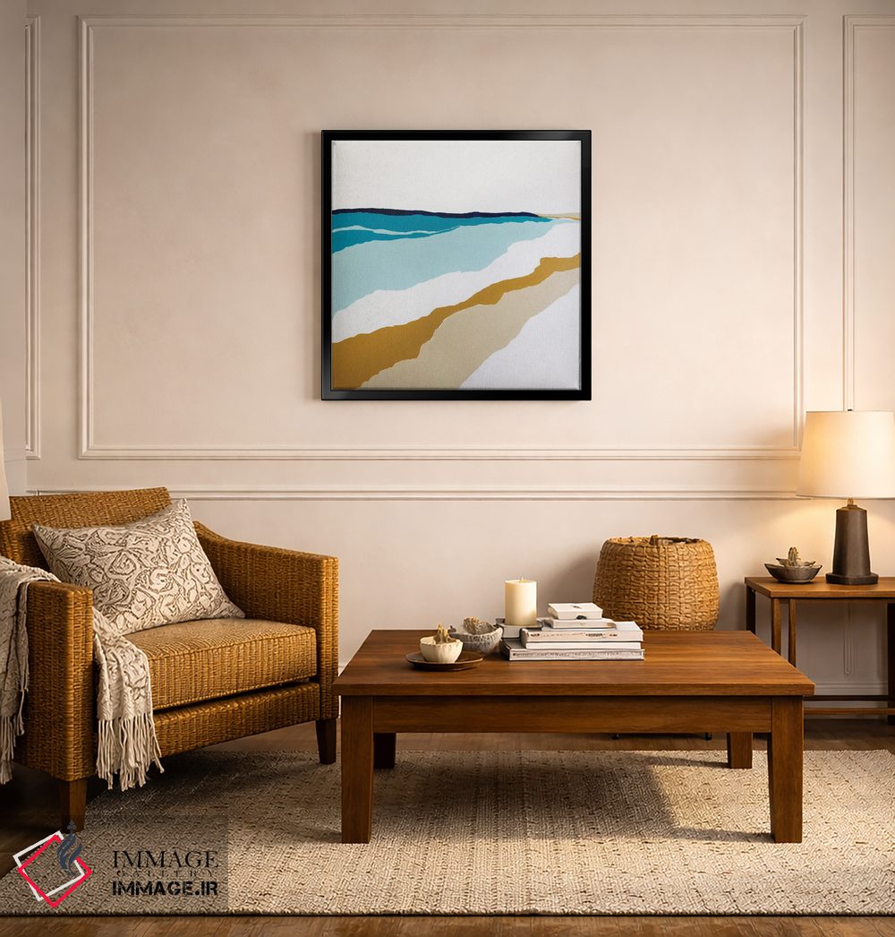 براساس پالت ترکیبی اثر، قاب بلوط روشن (چوبی) پیشنهاد اول است و استخوانی ملایم مکمل. برای سفارشهای پروژهای با ابعاد و قابهای اختصاصی با ایماژ در تماس باشید.