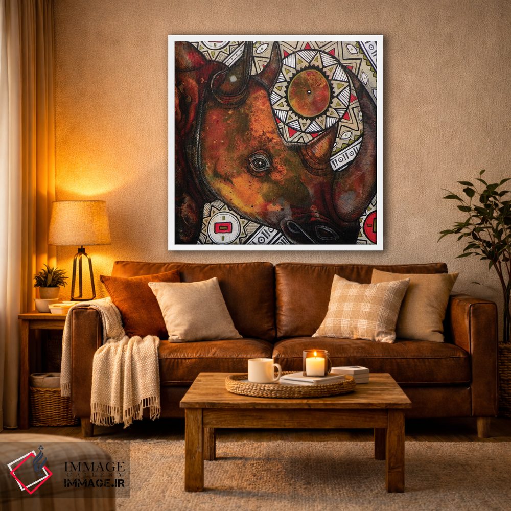 براساس پالت گرم اثر، قاب تیک گرم (چوبی) پیشنهاد اول است و مشکی مات (فریم متوسط) مکمل. برای سفارشهای پروژهای با ابعاد و قابهای اختصاصی با ایماژ در تماس باشید.