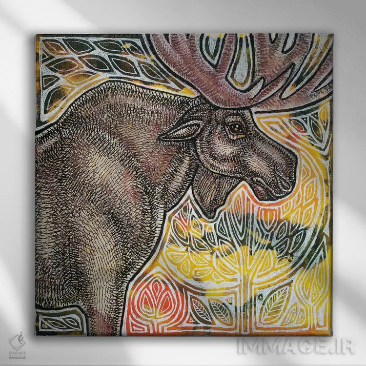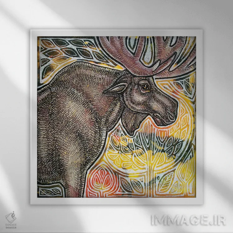 تابلو دکوراتیو گوزن شمالی ایستاده اثر لینت شلی - نمای نزدیک بافت بوم