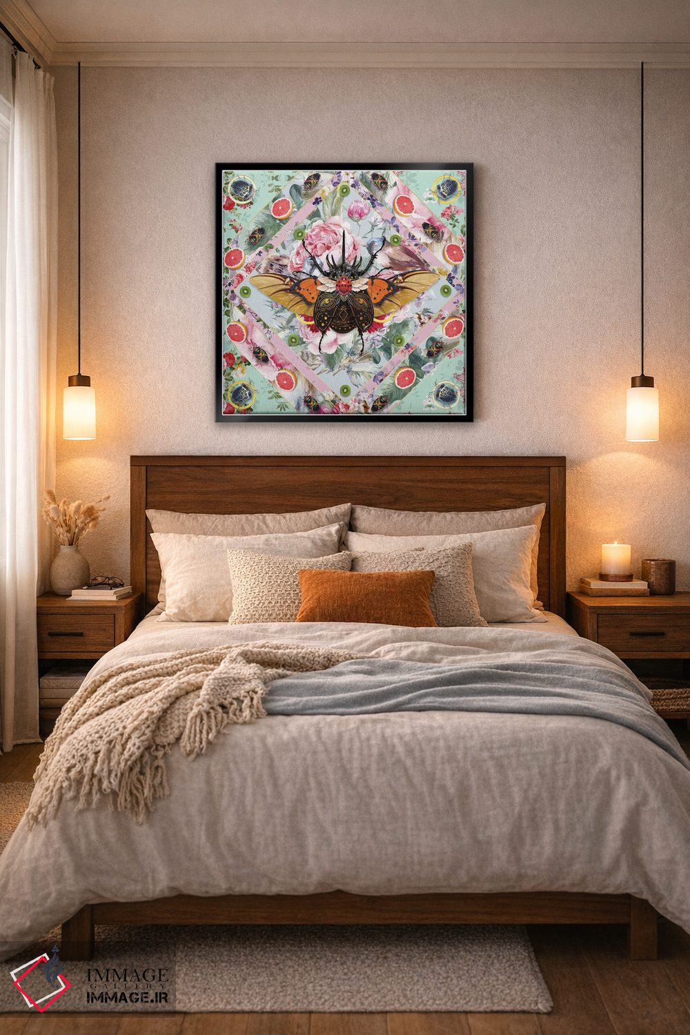 براساس پالت گرم اثر، قاب تیک گرم (چوبی) پیشنهاد اول است و مشکی مات (فریم متوسط) مکمل. برای سفارشهای پروژهای با ابعاد و قابهای اختصاصی با ایماژ در تماس باشید.