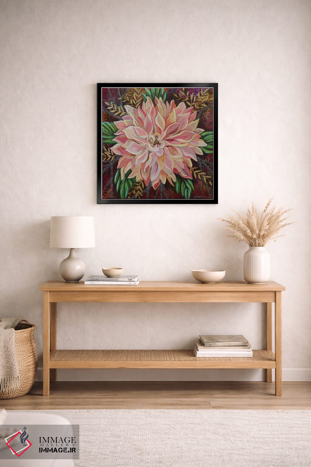 ساختار بوم گالری ایماژ طوری است که اثر روی دیوار «پرداختشده» و حرفهای دیده شود—نه پرزرقوبرقِ بیپایه؛ بلکه دقیق و خوشپرداخت. بافت ظریف کنواس باعث میشود حس اثر هنری را در نگاه نزدیک نگه میدارد بهخصوص وقتی نور موضعی ملایم داشته باشید. با ارائهی آماده نصب، برای یک ارائهی حرفهای ضروری است بهخصوص وقتی نور موضعی ملایم داشته باشید. حاصل کار، یک تابلو خوشنشین است که هم از دور اثرگذار است و هم از نزدیک خوشخوان؛ اگر محیط کمینهگرا است، همین پرداخت تمیز کافی است.