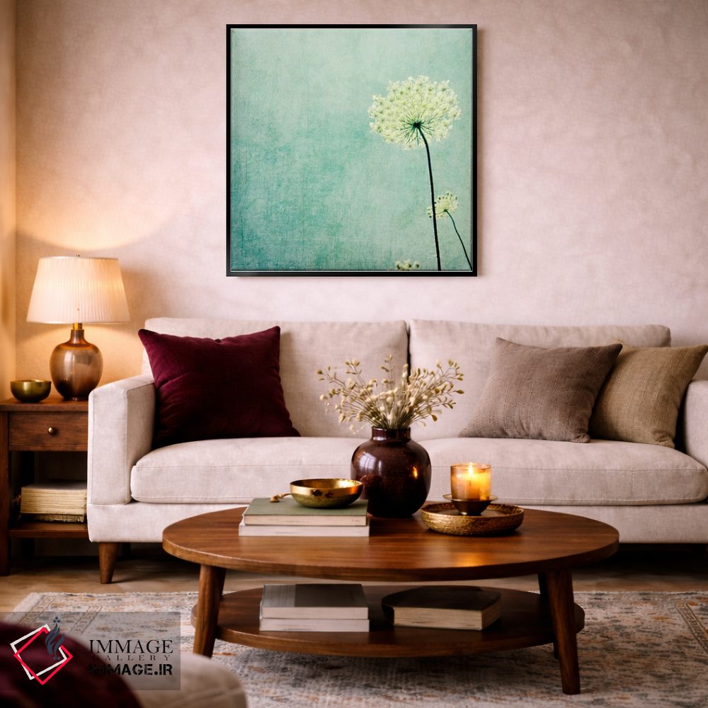 ساختار بوم گالری ایماژ طوری است که اثر روی دیوار «پرداختشده» و حرفهای دیده شود—نه پرزرقوبرقِ بیپایه؛ بلکه دقیق و خوشپرداخت. بافت ظریف کنواس باعث میشود حس اثر هنری را در نگاه نزدیک نگه میدارد. با کنترل تونها، کمک میکند رنگها روی دیوار واقعیتر بنشینند و در چیدمانهای مدرن و کمینهگرا خیلی خوب مینشیند. حاصل کار، یک تابلو خوشنشین است که هم از دور اثرگذار است و هم از نزدیک خوشخوان؛ و اگر بخواهید، میتوان چیدمان را برای گالریوال هم پیشنهاد داد. در کنار چوب و متریالهای طبیعی، بافت کنواس دلنشینتر دیده میشود.