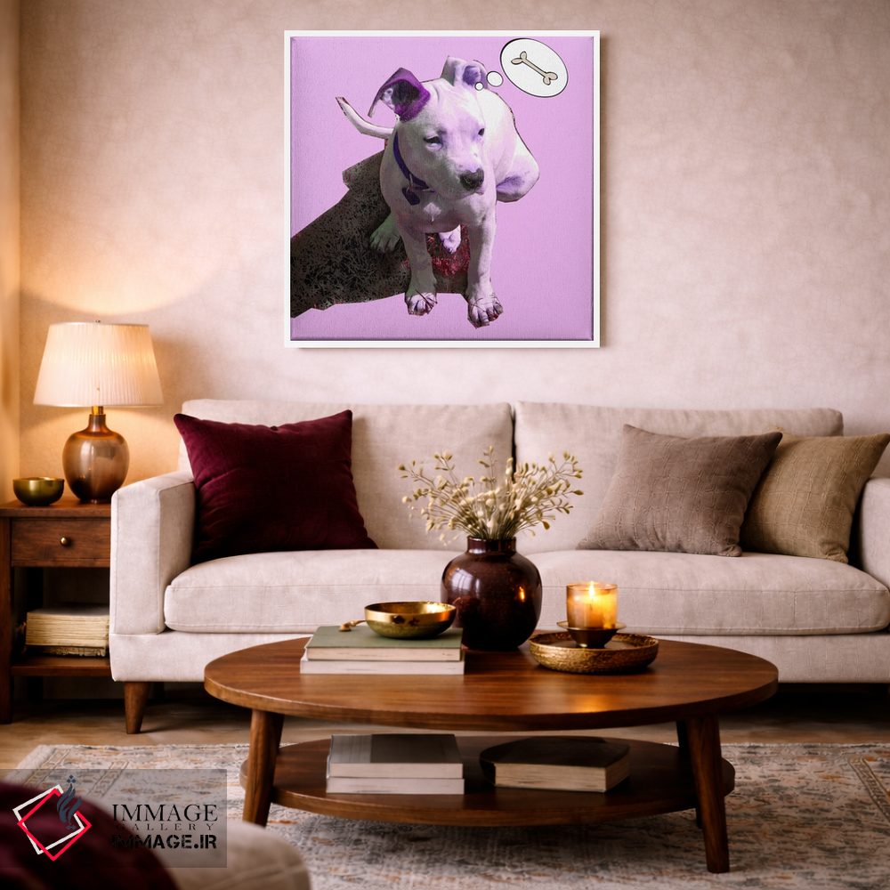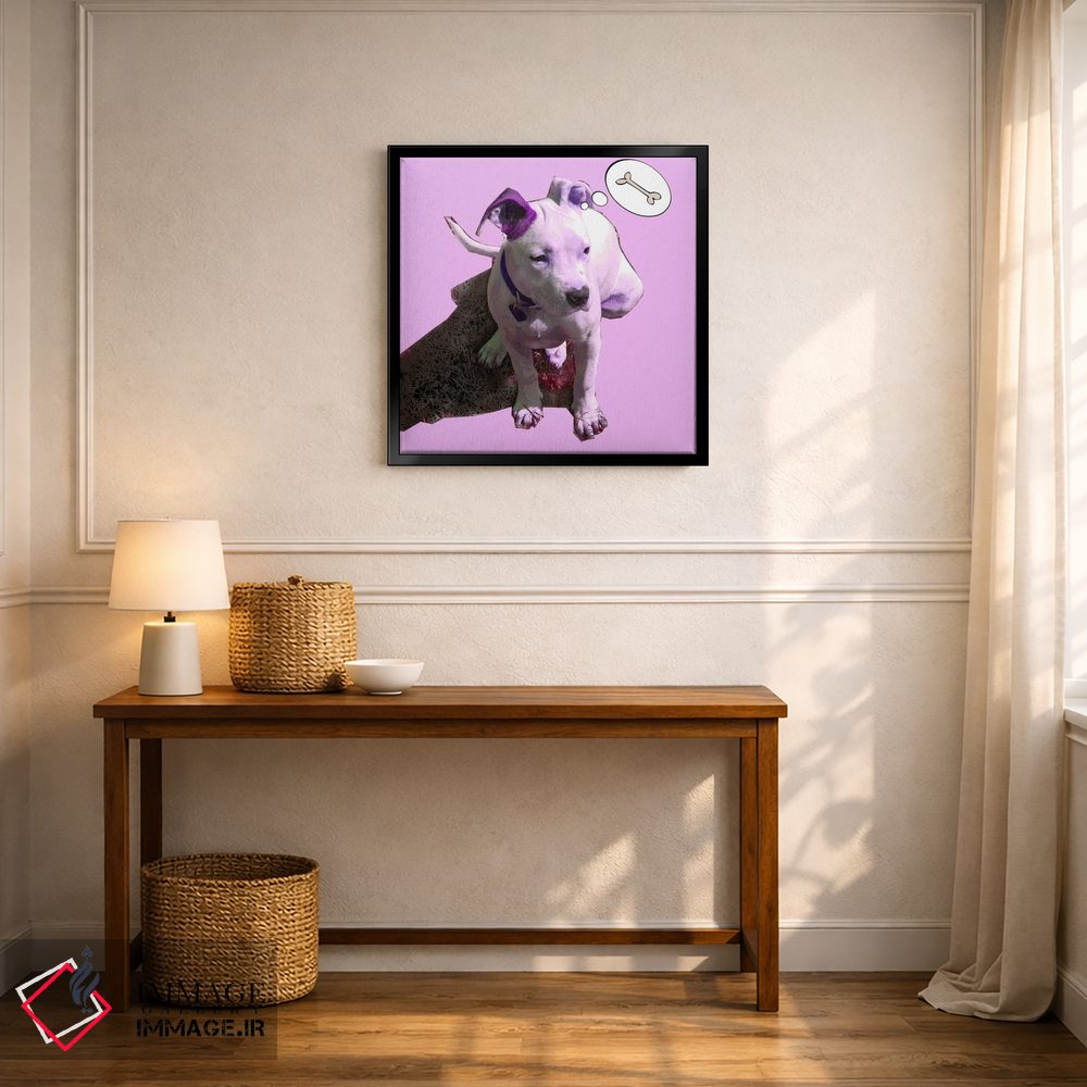 تابلو دکوراتیو توله سگ صورتی اثر لوز گرافیکس - نمای روبه‌رو روی دیوار