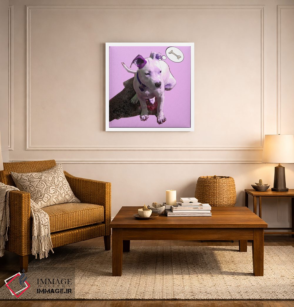 تابلو دکوراتیو توله سگ صورتی اثر لوز گرافیکس - نمای پرسپکتیو محصول
