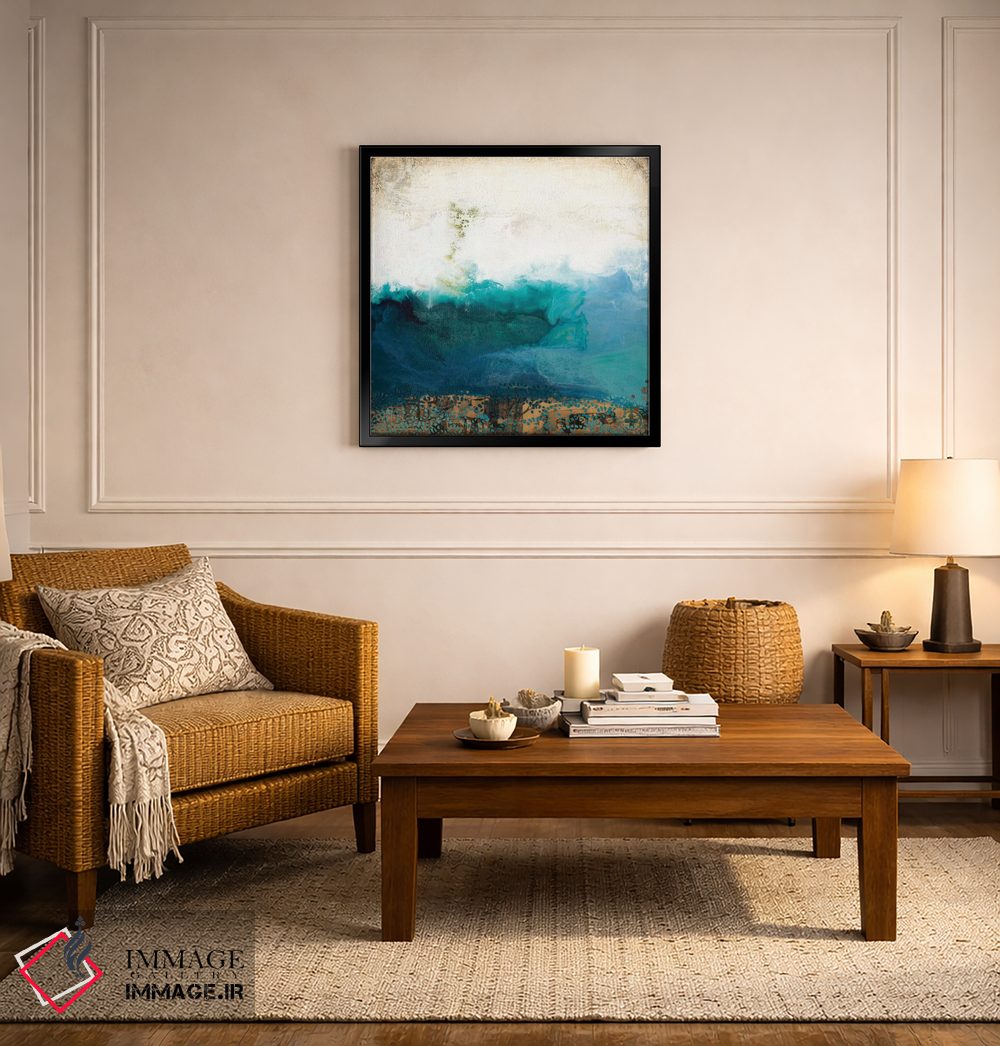 تابلو انتزاعی بالای آب اثر لورا ون هورن - نمای روبه‌رو روی دیوار