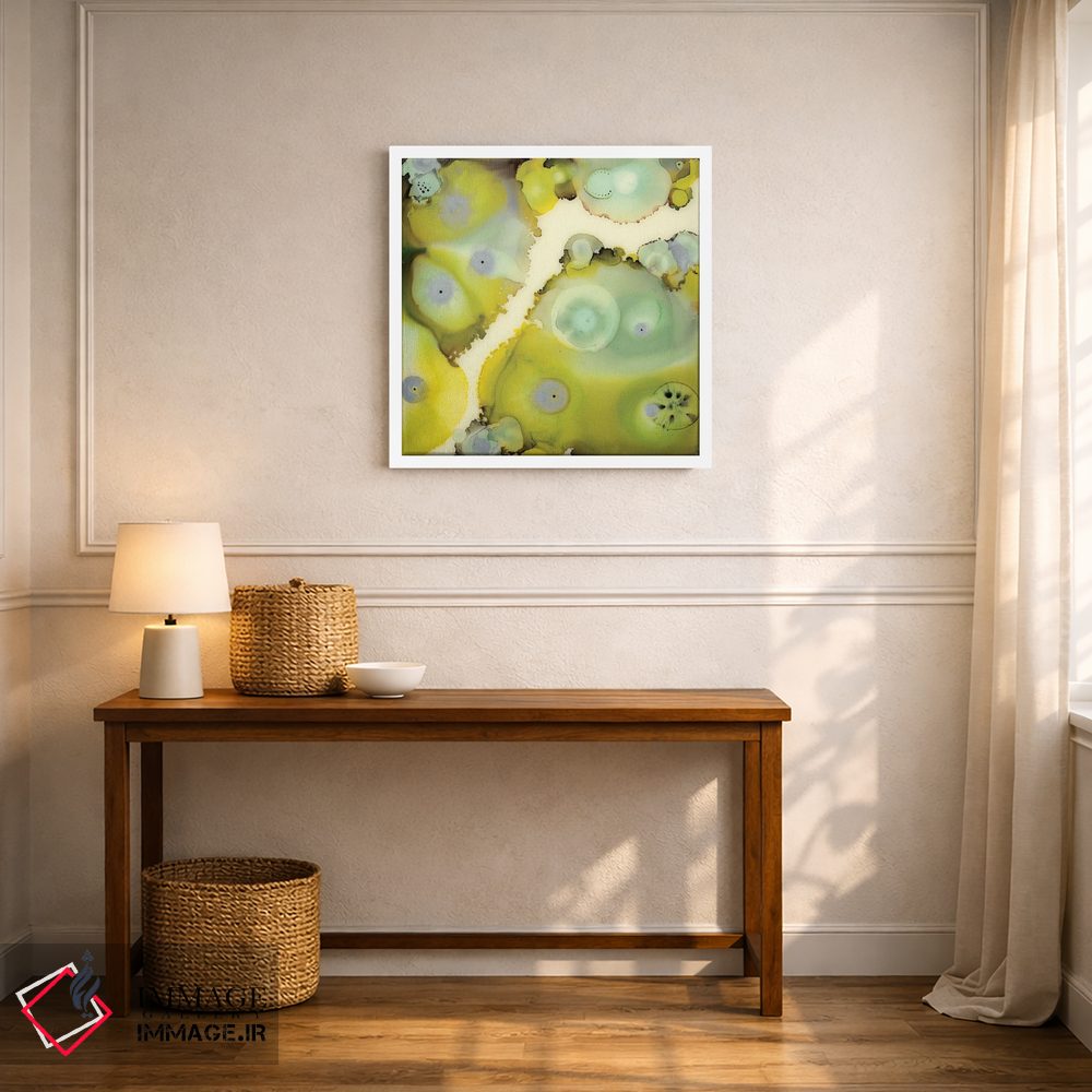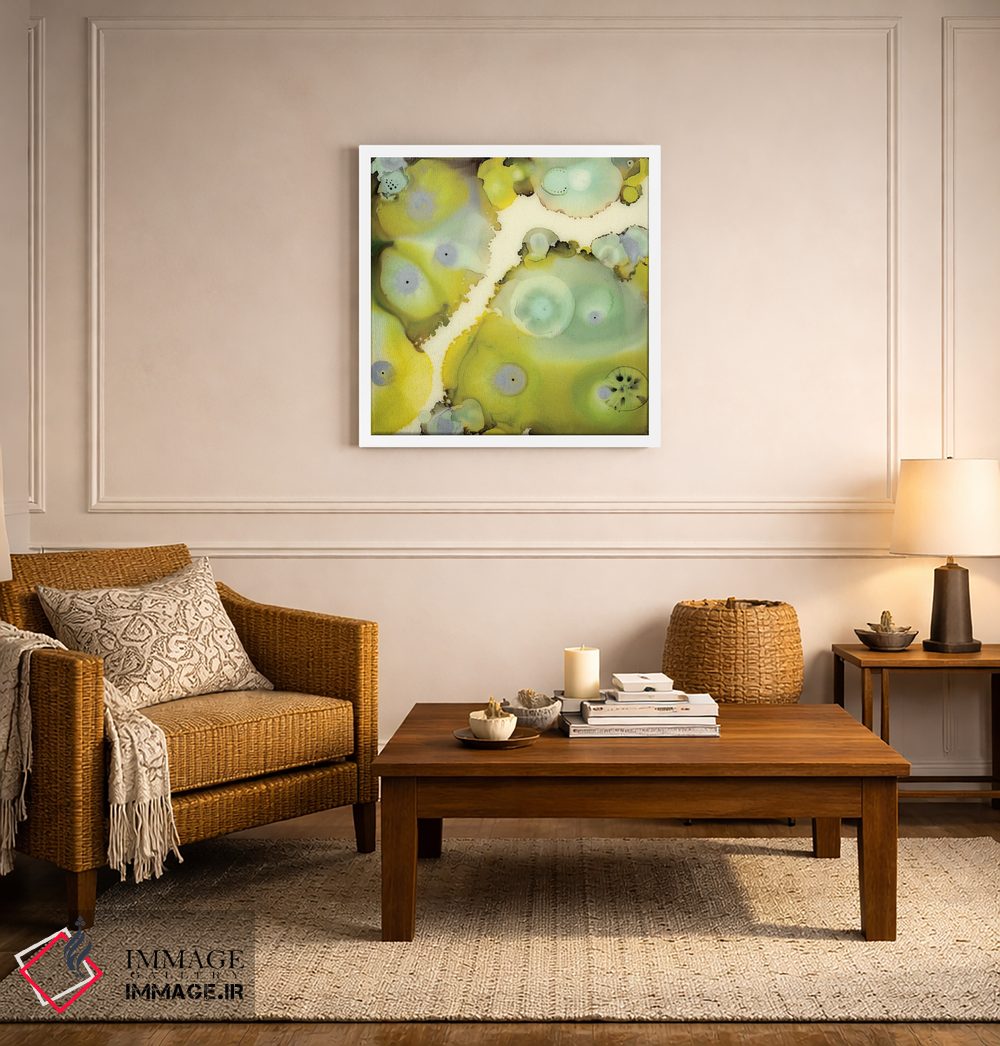 تابلو انتزاعی صخره لیمویی دو اثر لورا ون هورن - نمای قاب‌دار سفید