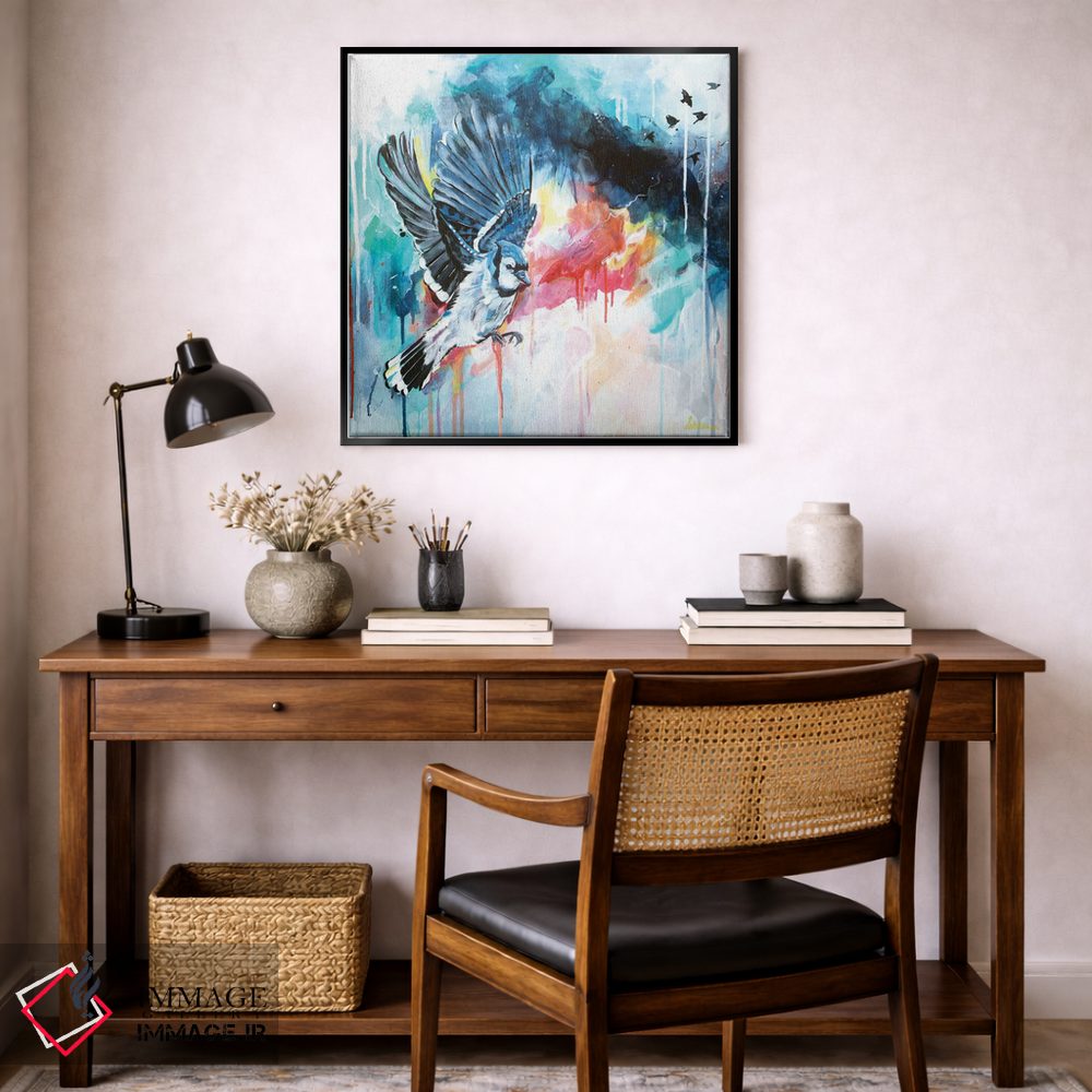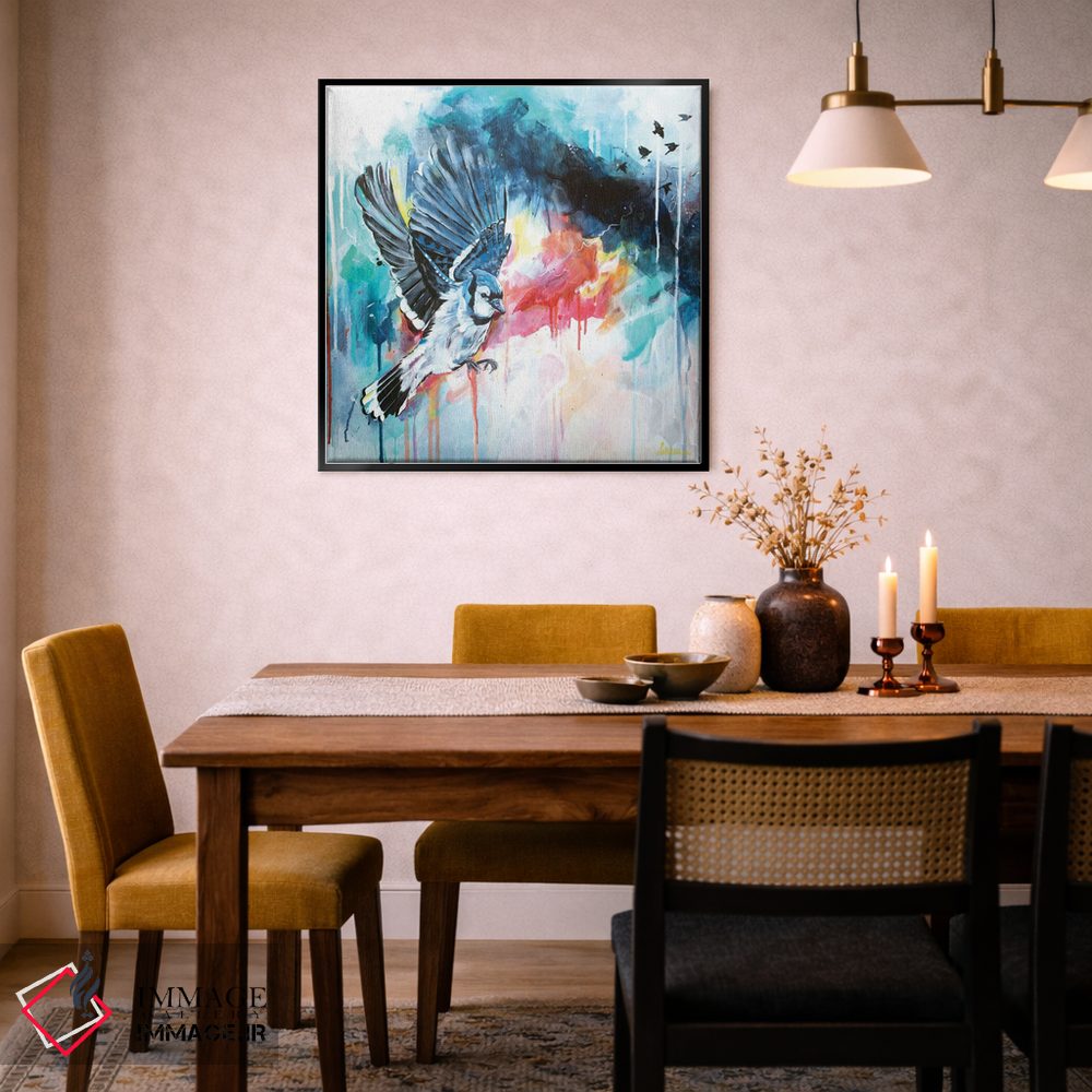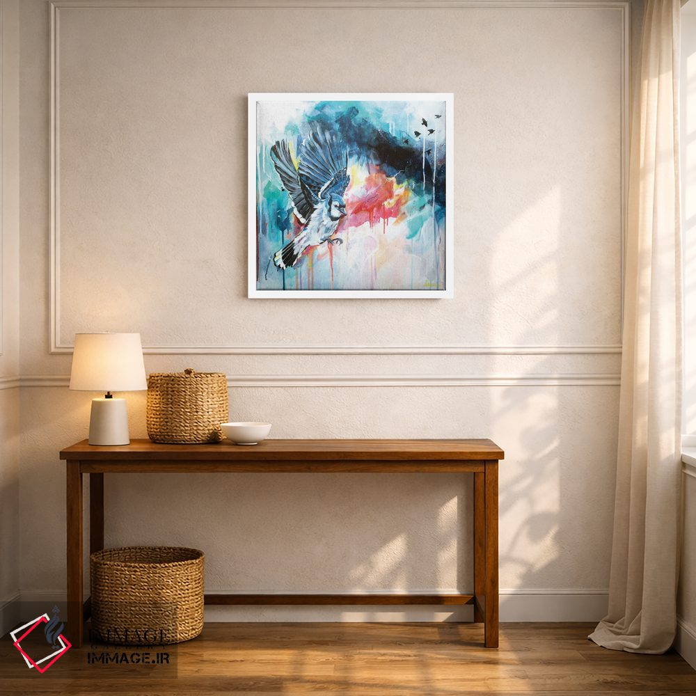 برای راهنمایی دربارهی قاب، اندازه یا سفارشهای ویژه، با ایماژ از طریق تماس—با—ما/">تماس با ما در ارتباط باشید تا تصمیم سریعتر شود. در صورتی که میخواهید اثر در محیط «پر انرژی و رنگی» دیده شود، نور موضعی ملایم نتیجه را بهتر نشان میدهد و نتیجه را مرتبتر و تمیزتر میکند.