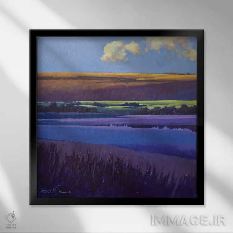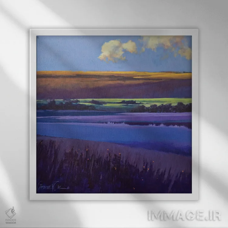 براساس پالت ترکیبی اثر، قاب تیک گرم (چوبی) پیشنهاد اول است و مشکی مات (فریم متوسط) مکمل. برای سفارشهای پروژهای با ابعاد و قابهای اختصاصی با ایماژ در تماس باشید.