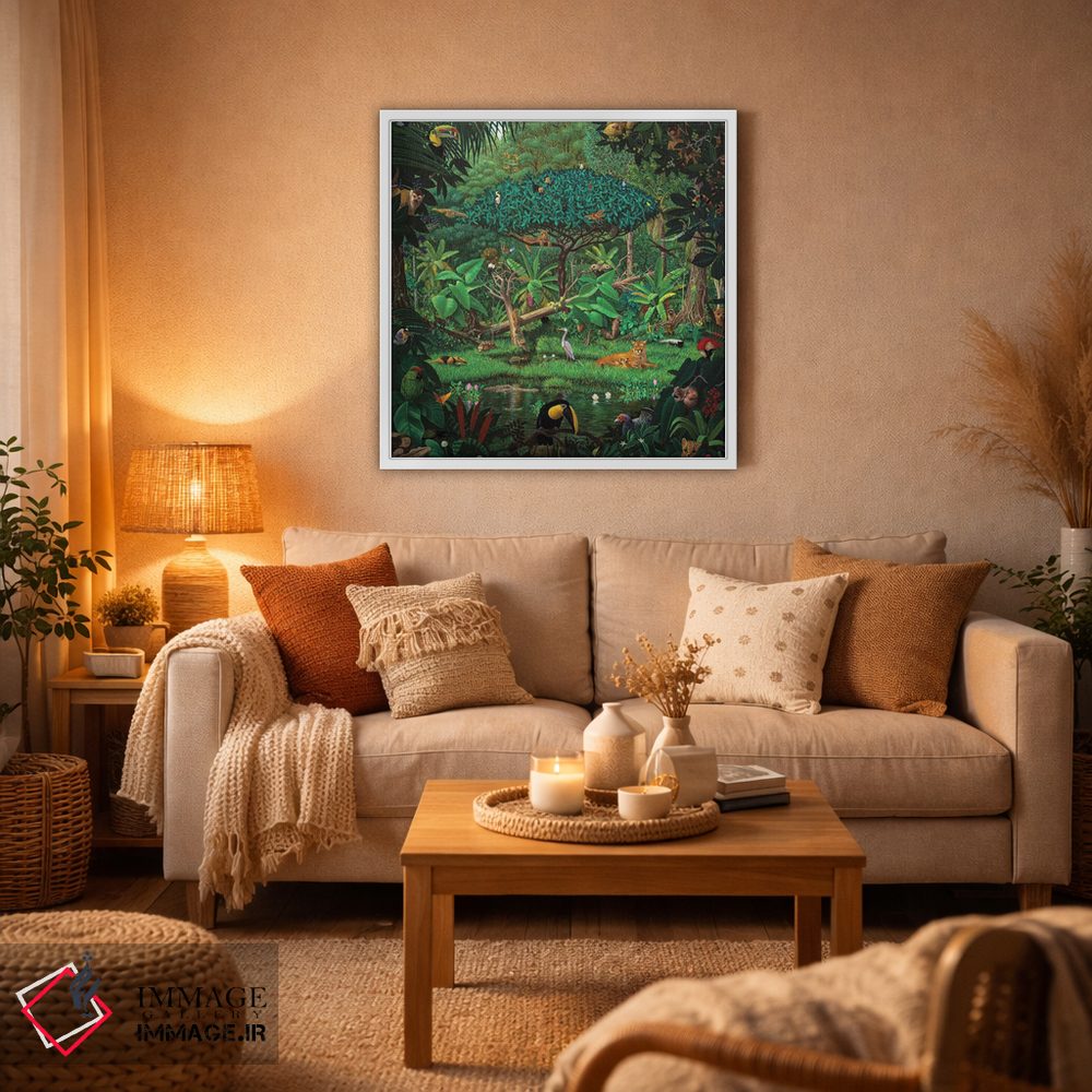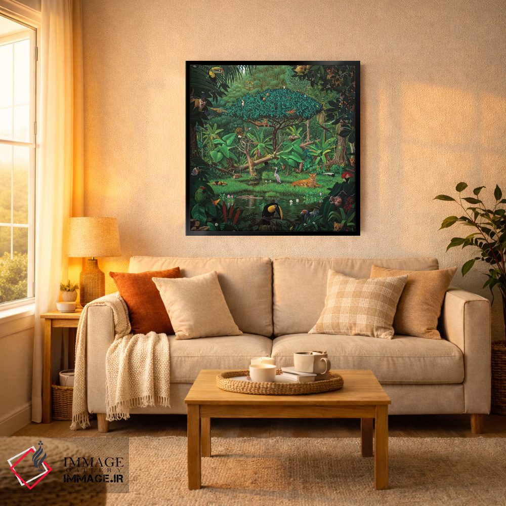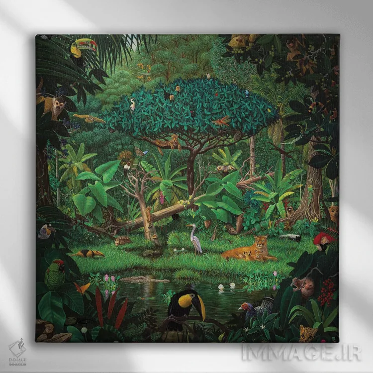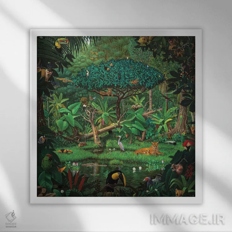 اگر به آثار حیوانات علاقه دارید، «رازهای جنگل بارانی» اثرِ «چارلز لین براگ» حس طبیعت را بیدغدغه وارد خانه میکند، برای اتاق بازی یا گوشهٔ مطالعه گزینهٔ مناسبیست. هر بار نگاهش میکنید، یک جزئیات تازه به چشم میآید.