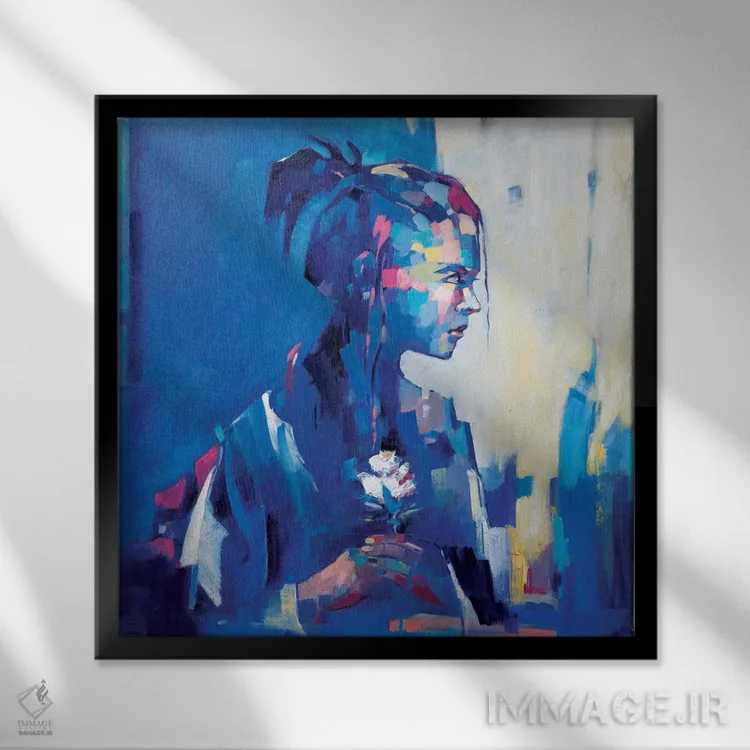 براساس پالت ترکیبی اثر، قاب تیک گرم (چوبی) پیشنهاد اول است و مشکی مات (فریم متوسط) مکمل. برای سفارشهای پروژهای با ابعاد و قابهای اختصاصی با ایماژ در تماس باشید.