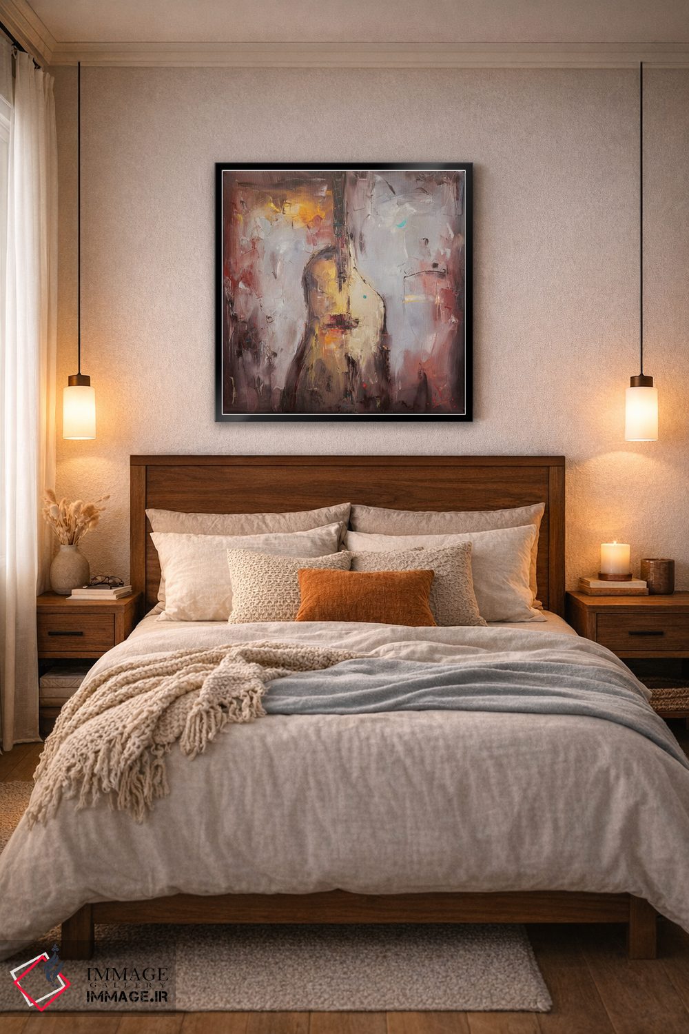 براساس پالت گرم اثر، قاب تیک گرم (چوبی) پیشنهاد اول است و مشکی مات (فریم متوسط) مکمل. برای سفارشهای پروژهای با ابعاد و قابهای اختصاصی با ایماژ در تماس باشید.