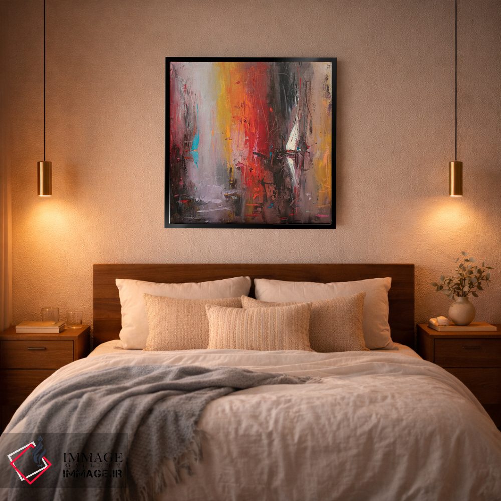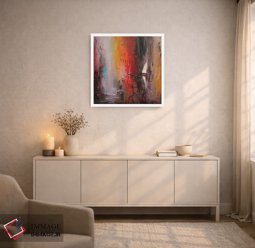 براساس پالت گرم اثر، قاب تیک گرم (چوبی) پیشنهاد اول است و مشکی مات (فریم متوسط) مکمل. برای سفارشهای پروژهای با ابعاد و قابهای اختصاصی با ایماژ در تماس باشید.