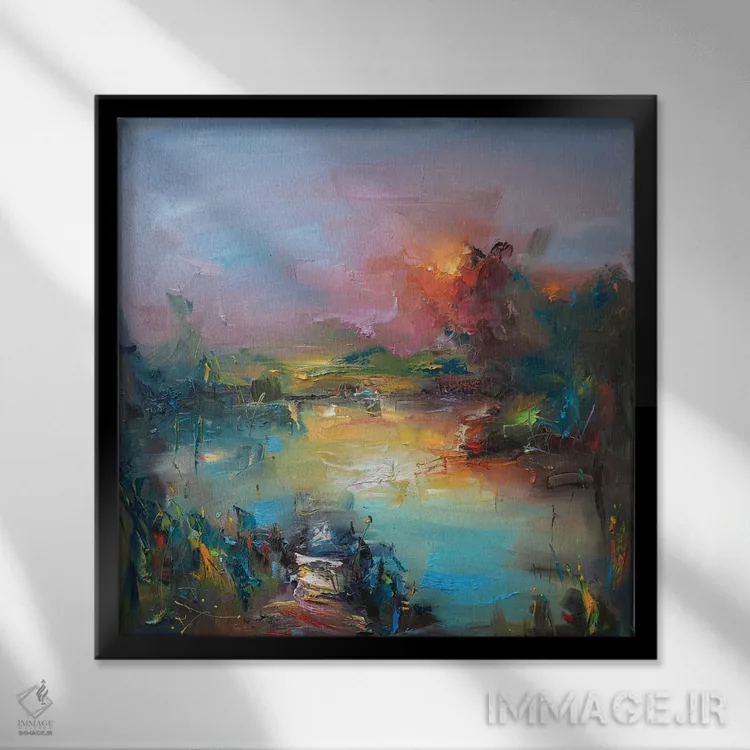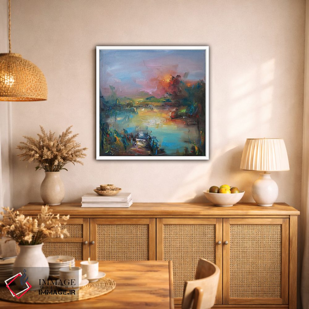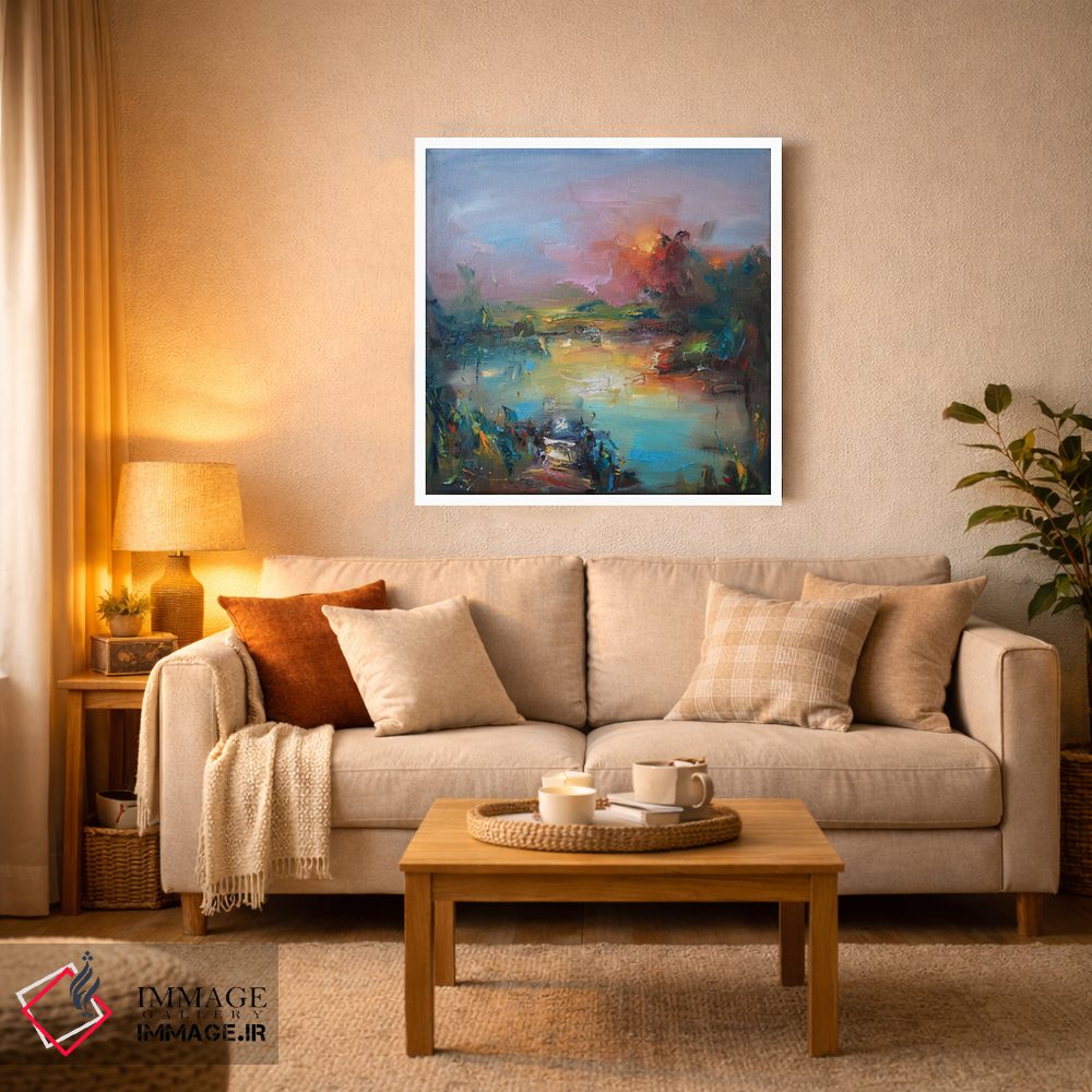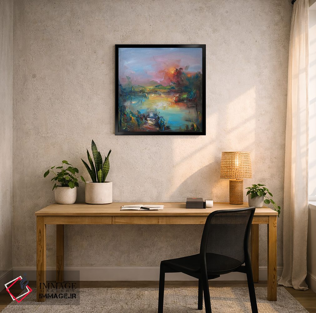 براساس پالت ترکیبی اثر، قاب تیک گرم (چوبی) پیشنهاد اول است و مشکی مات (فریم متوسط) مکمل. برای سفارشهای پروژهای با ابعاد و قابهای اختصاصی با ایماژ در تماس باشید.