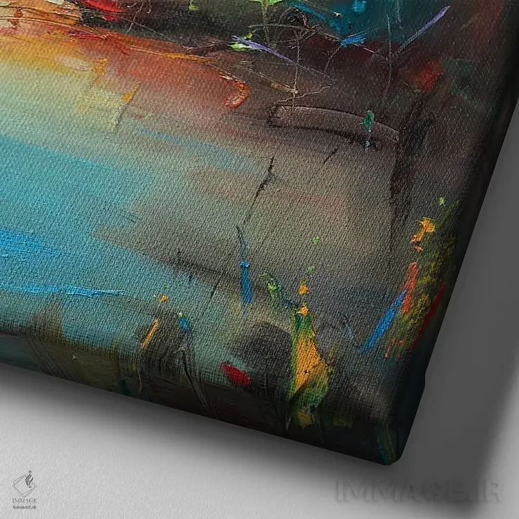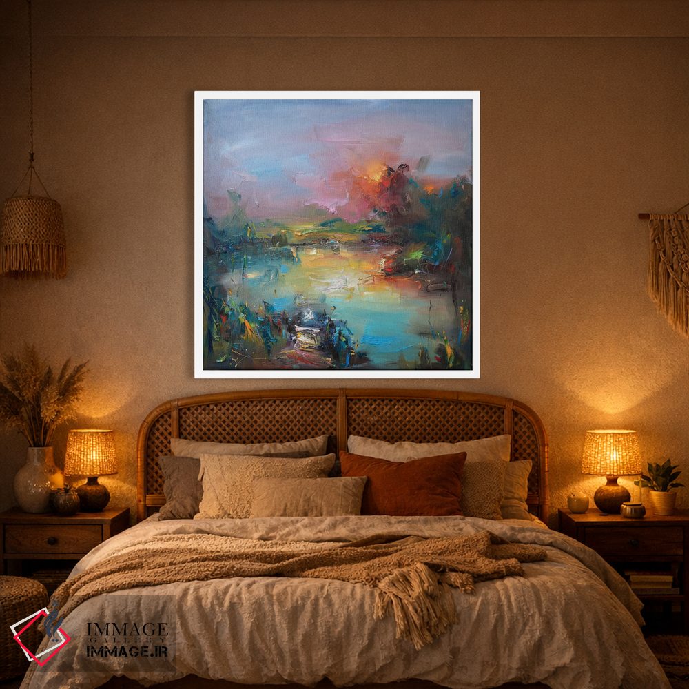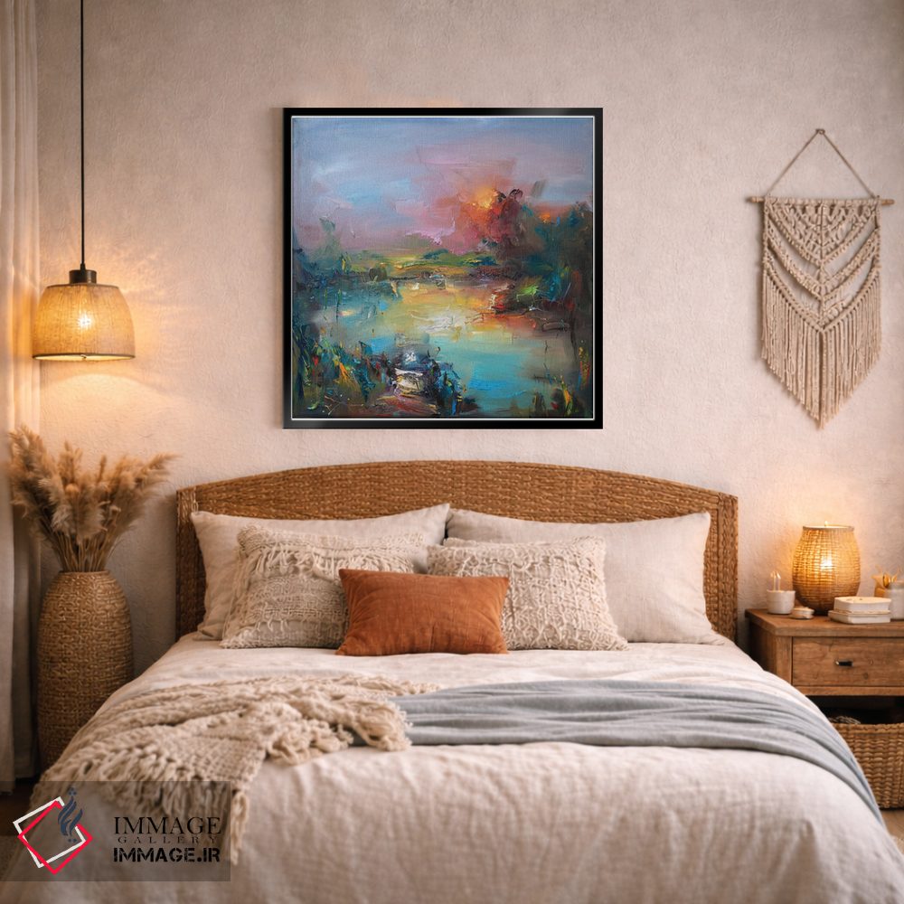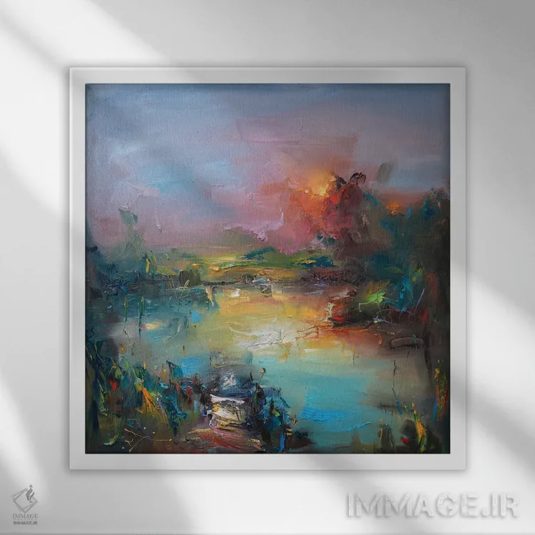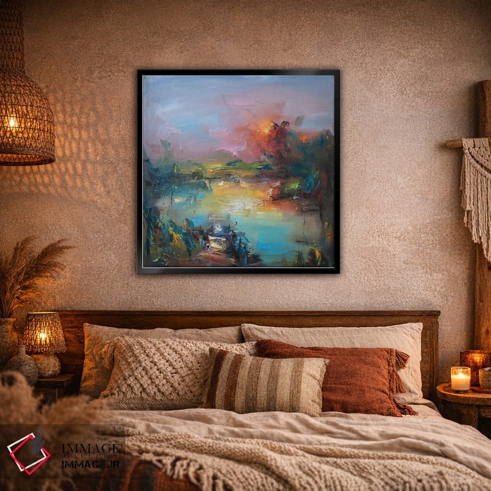براساس پالت ترکیبی اثر، قاب تیک گرم (چوبی) پیشنهاد اول است و مشکی مات (فریم متوسط) مکمل. برای سفارشهای پروژهای با ابعاد و قابهای اختصاصی با ایماژ در تماس باشید.