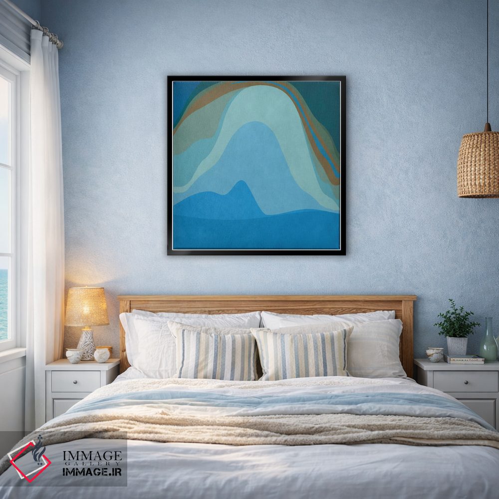 در «هنر مدرن—سیاره آبی» اثرِ «فایو بای فایو کالکتیو»، ریتم بصری به چشم میآید؛ مناسب برای دیوار شاخص کنار مبلمان ساده.