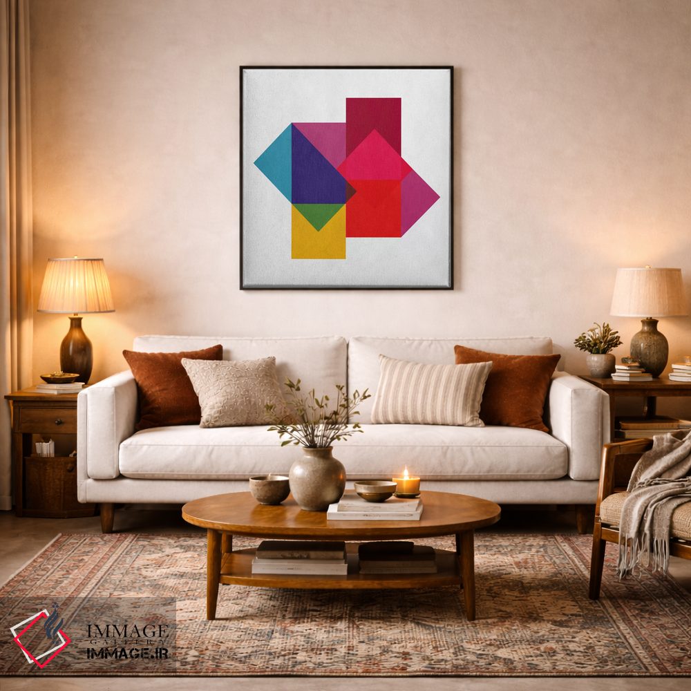 ساختار بوم گالری ایماژ طوری است که اثر روی دیوار «پرداختشده» و حرفهای دیده شود—نه پرزرقوبرقِ بیپایه؛ بلکه دقیق و خوشپرداخت. بافت ظریف کنواس کمک میکند حس اثر هنری را در نگاه نزدیک نگه میدارد. در قابپذیری، هماهنگی قاب با پالت رنگ جلوه را تقویت میکند و نتیجه را یکدستتر میکند. اگر دوست دارید قاب هم اضافه شود، میتوانید از گزینههای سایت استفاده کنید یا برای انتخاب سفارشی هماهنگ کنید؛ در کنار نورپردازی درست، جلوهی گالریوار بیشتری حس میشود. برای محیطهای کوچک، انتخاب قاب ساده و یک نور موضعی ملایم نتیجه را حرفهایتر میکند.