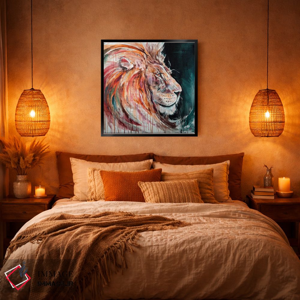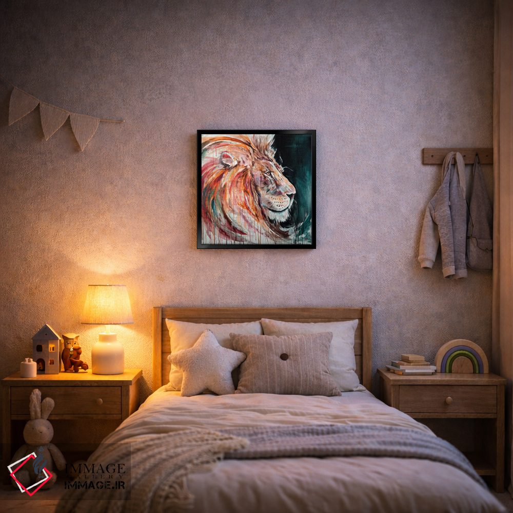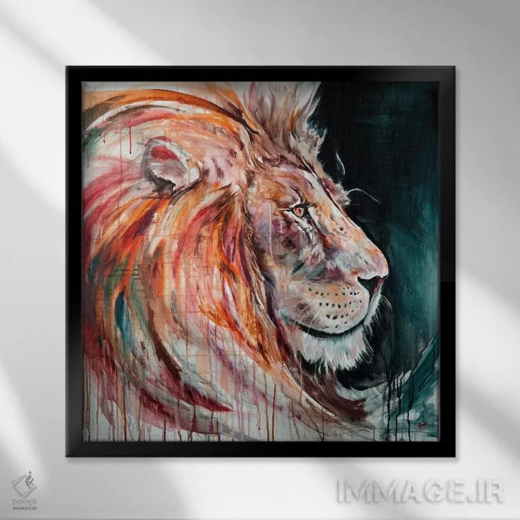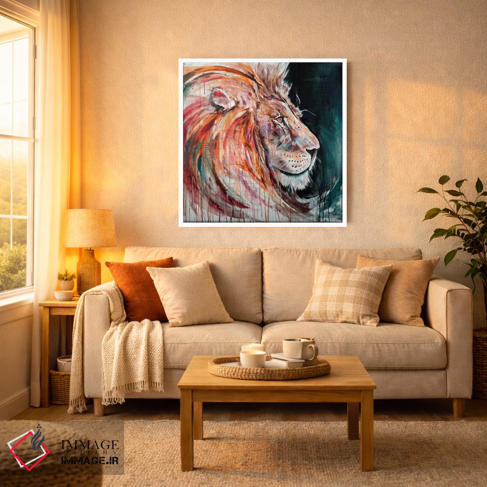 براساس پالت ترکیبی اثر، قاب تیک گرم (چوبی) پیشنهاد اول است و مشکی مات (فریم متوسط) مکمل. برای سفارشهای پروژهای با ابعاد و قابهای اختصاصی با ایماژ در تماس باشید.