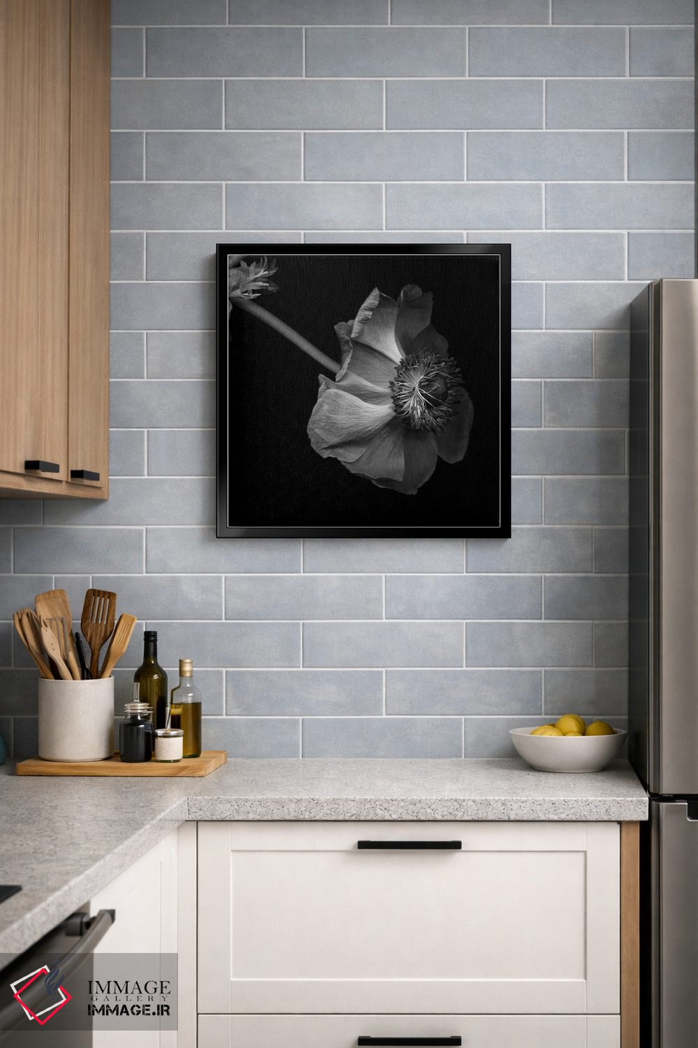براساس پالت خنثی اثر، قاب مشکی مات (فریم باریک) پیشنهاد اول است و سفید مات (فریم باریک) مکمل. برای سفارشهای پروژهای با ابعاد و قابهای اختصاصی با ایماژ در تماس باشید.